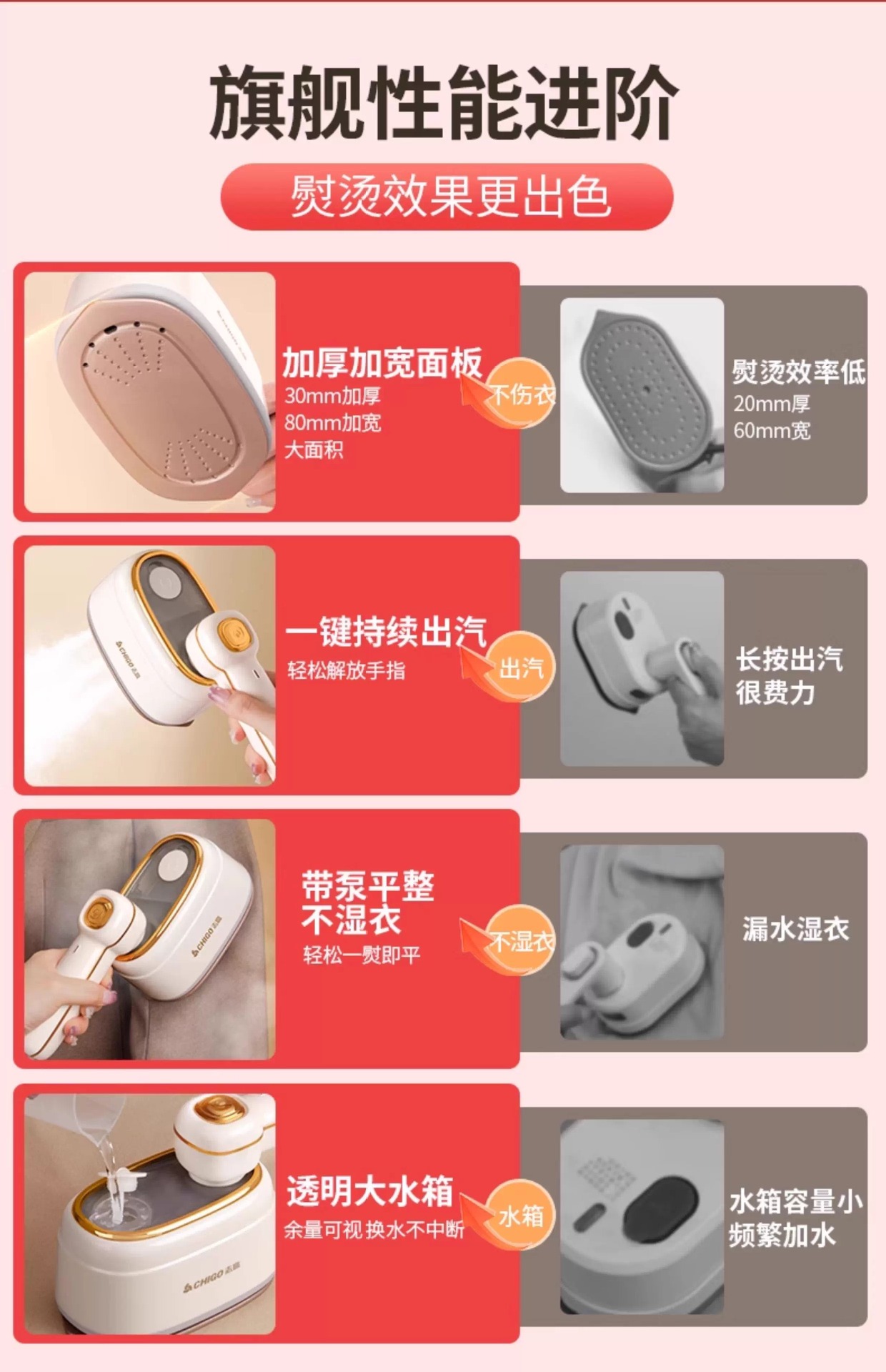 Chigo 스팀 의류 다림질 기계 가정용 휴대용 휴대용 의류 다림질 기계 주름 제거 유물 재고 있음 도매 배송스토어 가기