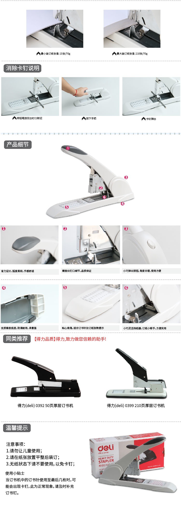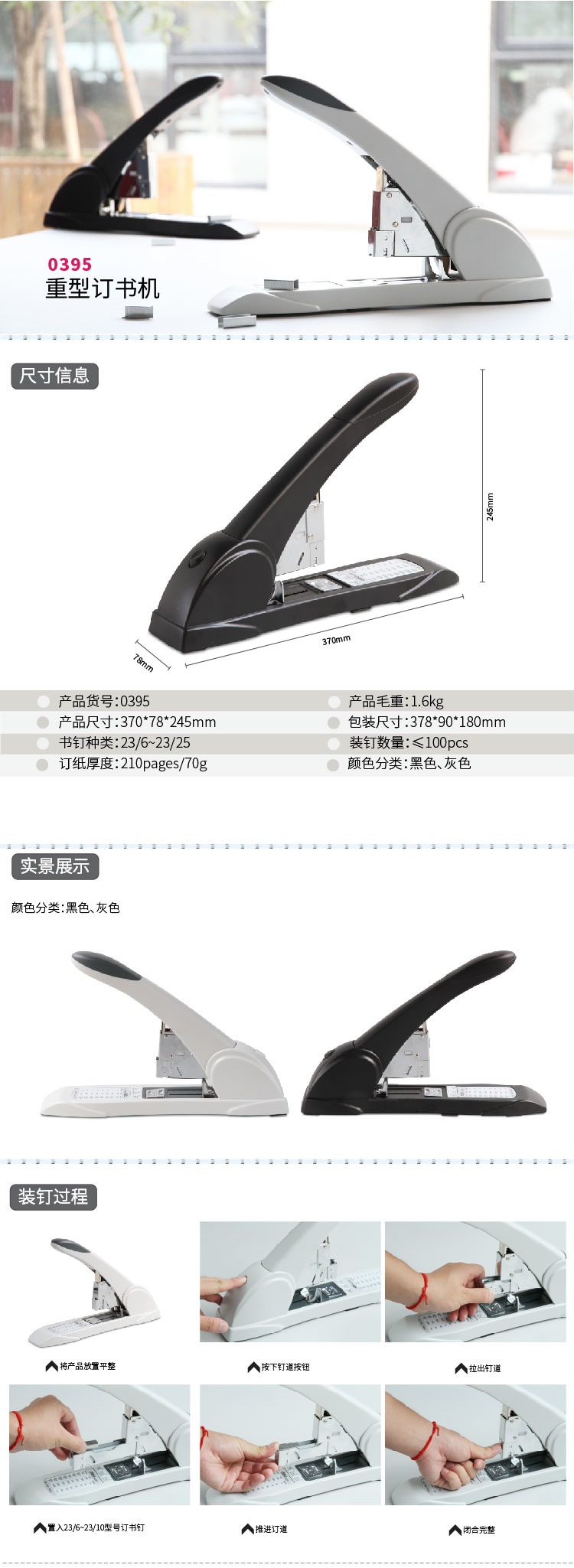 델리 0395 헤비듀티 두꺼운 노동 절약형 스테이플러 210페이지 긴 팔 대형 스테이플러 두꺼운층 금융 바인더스토어 가기