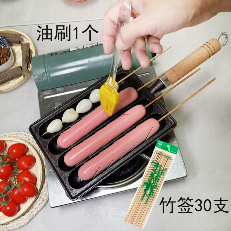 • [세로형] 기름붓이 포함된 유출 방지 소시지 냄비 + 대나무 꼬치 30개