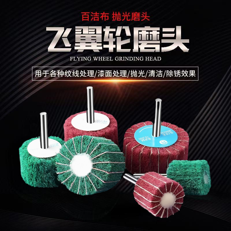 손잡이가 있는 녹색 수세미, 연마 휠, 빨간색 플라잉 윙 휠 연삭 헤드, 섬유 연삭 헤드, 사포스토어 가기