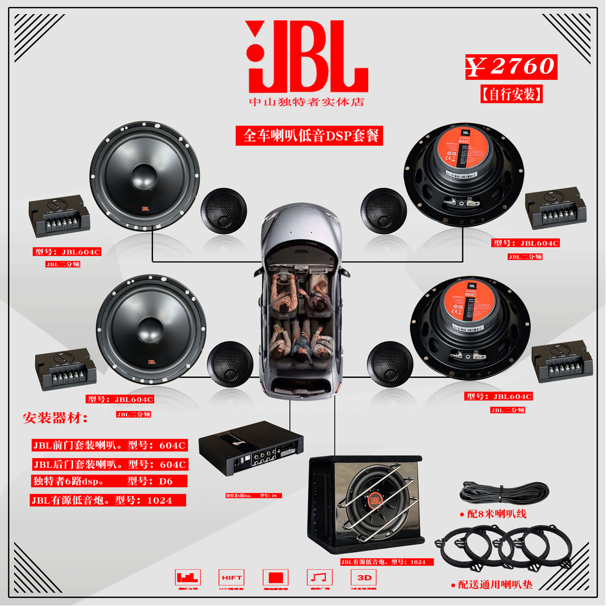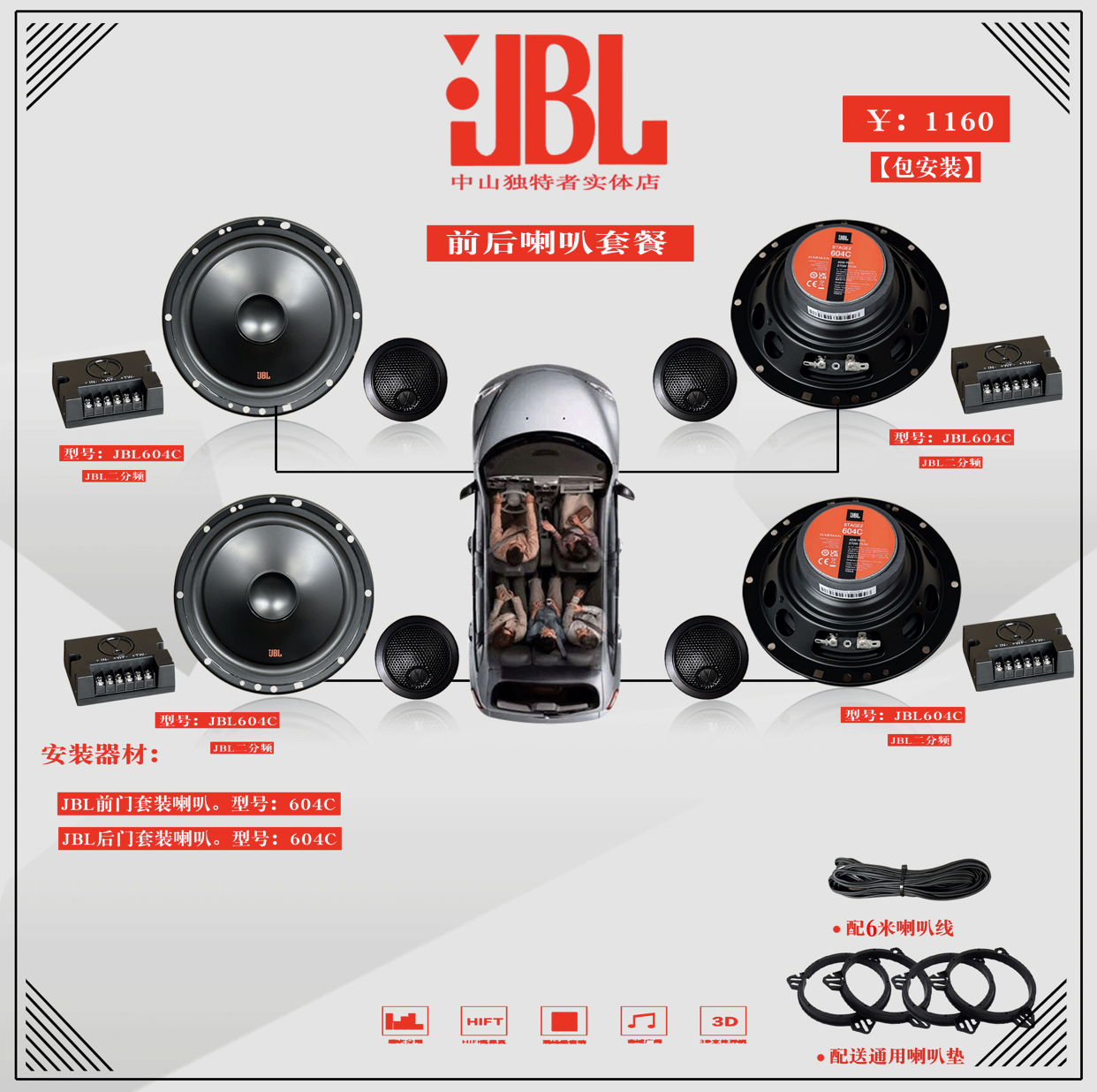 재고 있음 JBL 자동차 스피커 604c 도어 6inch 2주파수 자동차 오디오 HiFi 스피커 고음 저음