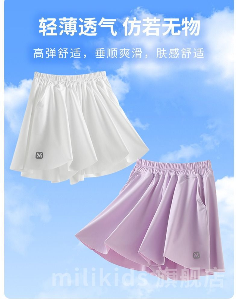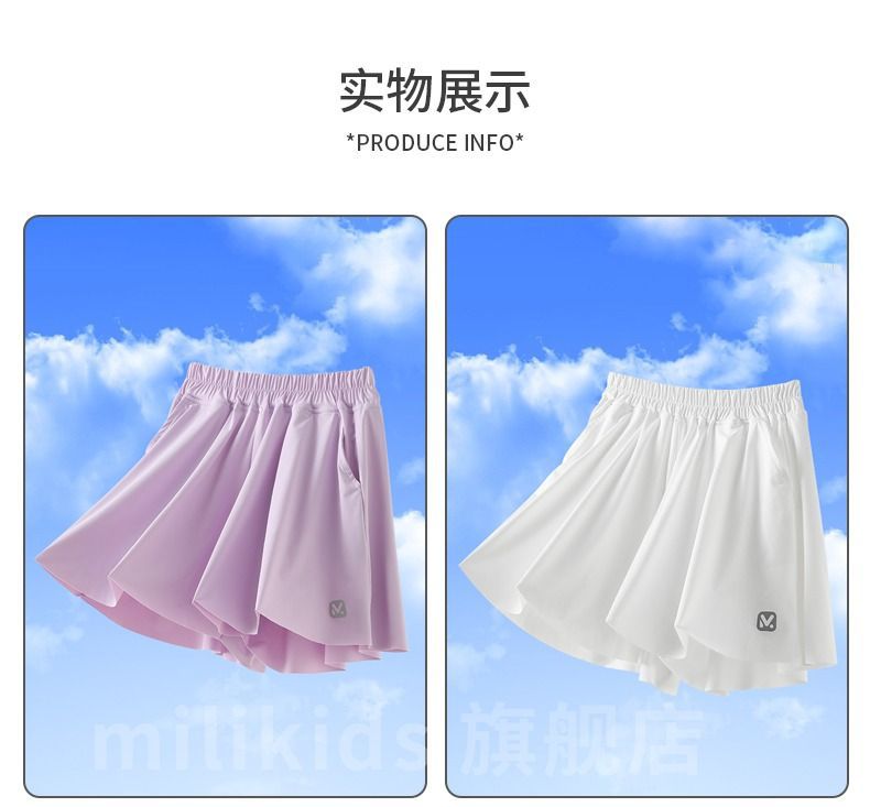 여자 스포츠 테니스 스커트 여름 2025 새로운 어린이 스커트 빠른 건조 스커트 바지 큰 어린이 얼음 실크스토어 가기