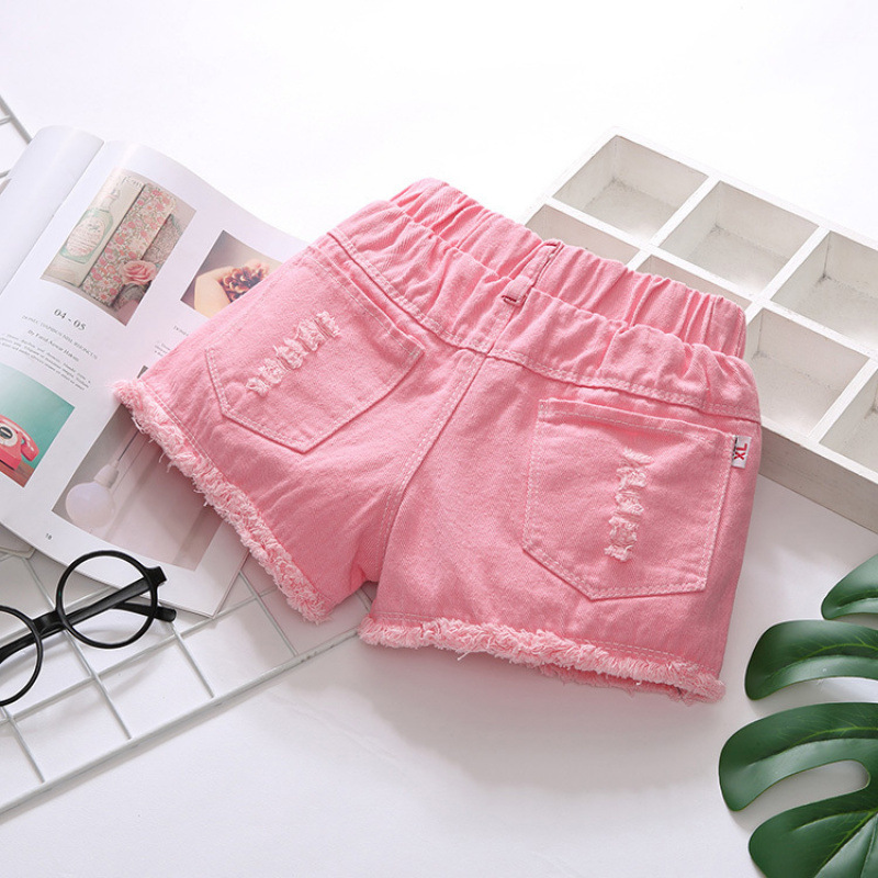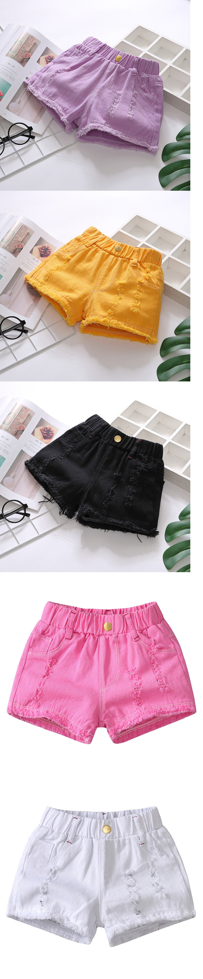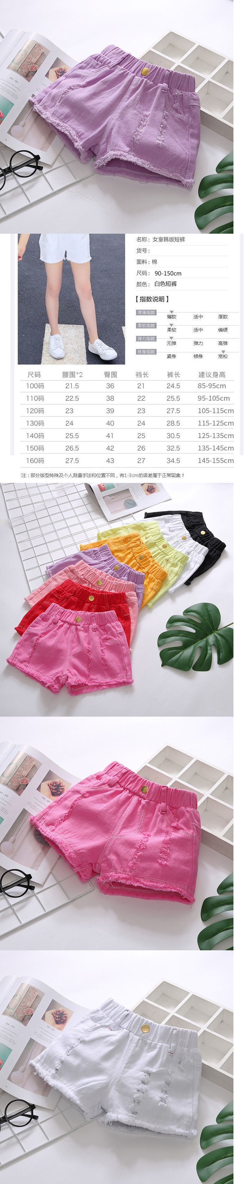 여름 아우터용 여아용 블랙 데님 반바지 화이트 찢어진 신작 아동 한국식 얇은 중대형 아동용 면스토어 가기