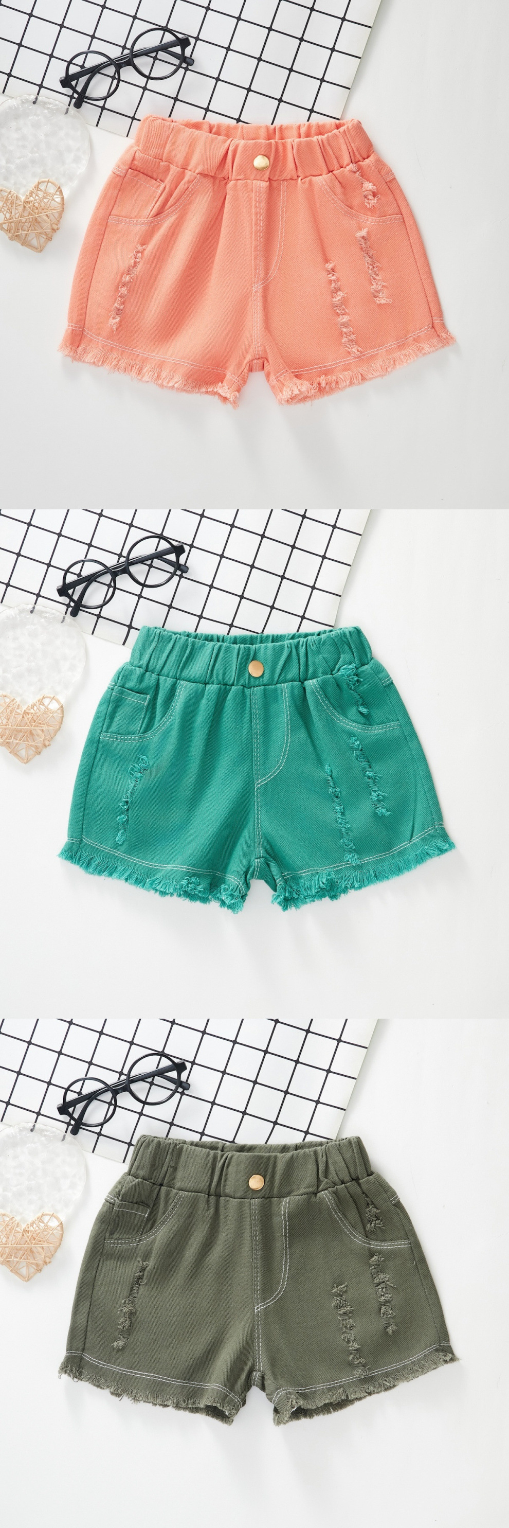 여름 아우터용 여아용 블랙 데님 반바지 화이트 찢어진 신작 아동 한국식 얇은 중대형 아동용 면