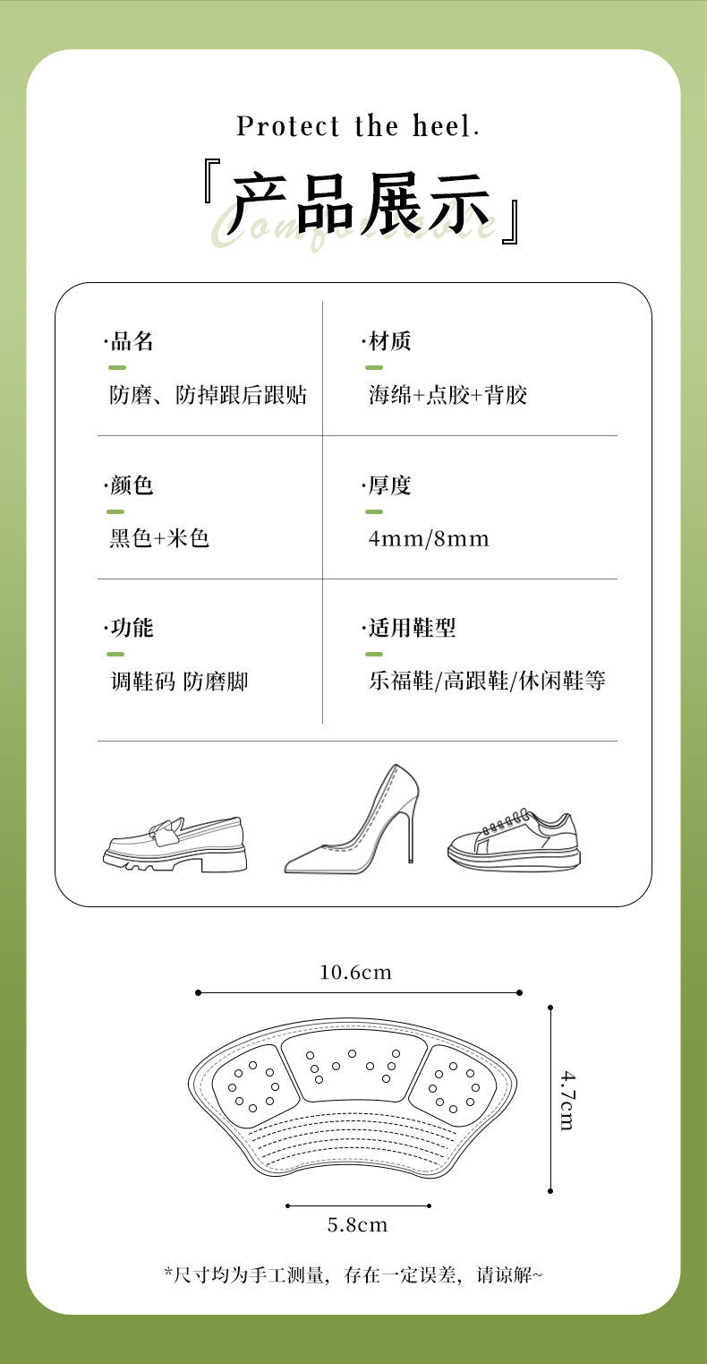 발뒤꿈치가 떨어지는 것을 방지하고 발을 마모하는 것을 방지하는 발뒤꿈치 스티커, 발을 한 사이즈 줄이기, 발뒤꿈치 마모 방지 스티커, 하이힐 반사이즈 패드