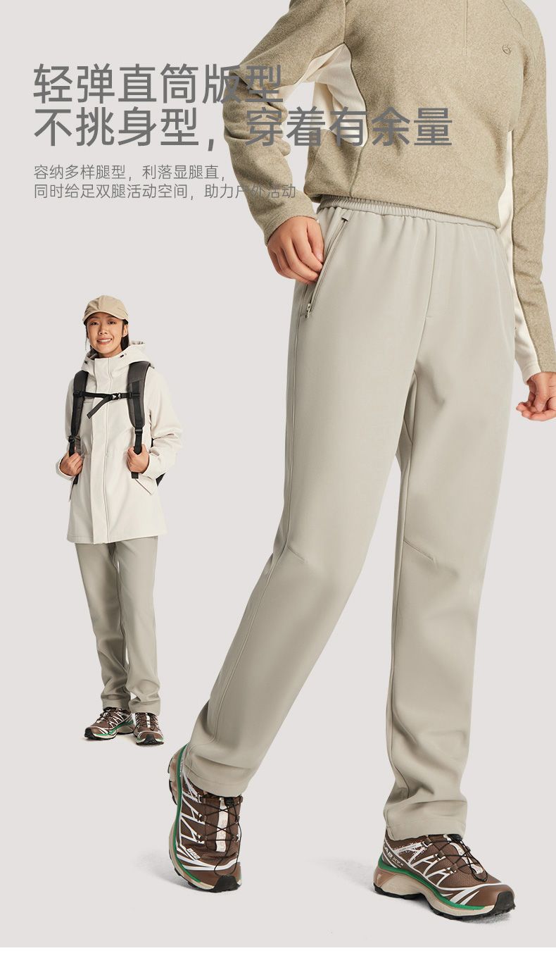 24 가을 겨울 탐험 야외 소프트 쉘 바지 여성용 벨벳 충전 바지 하이킹 바지 방풍 및 방수 여성용 스트레이트 바지
