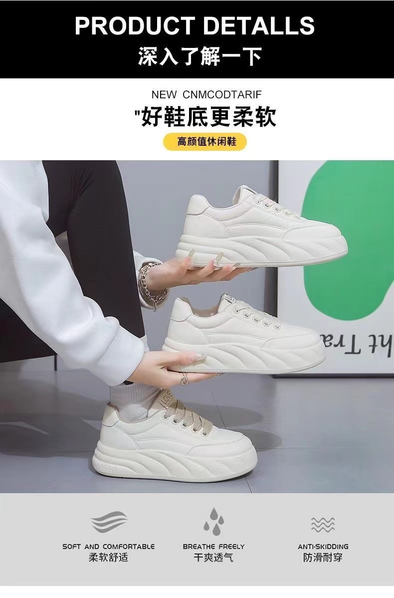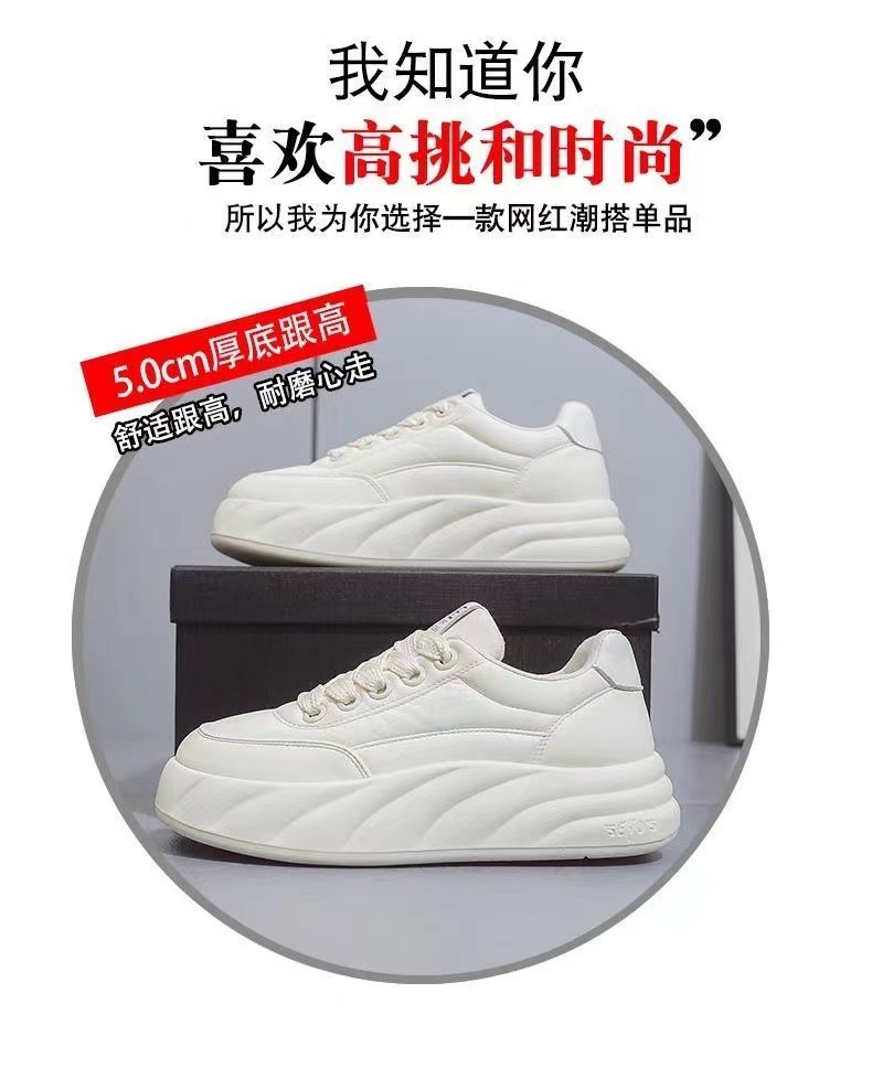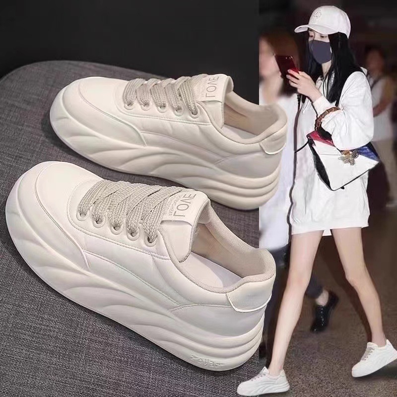 여성을위한 두꺼운 밑창 높이 증가 빵 흰색 신발 2024 봄 새로운 다목적 초경량 부드러운 밑창 캐주얼 스포츠 스니커즈스토어 가기