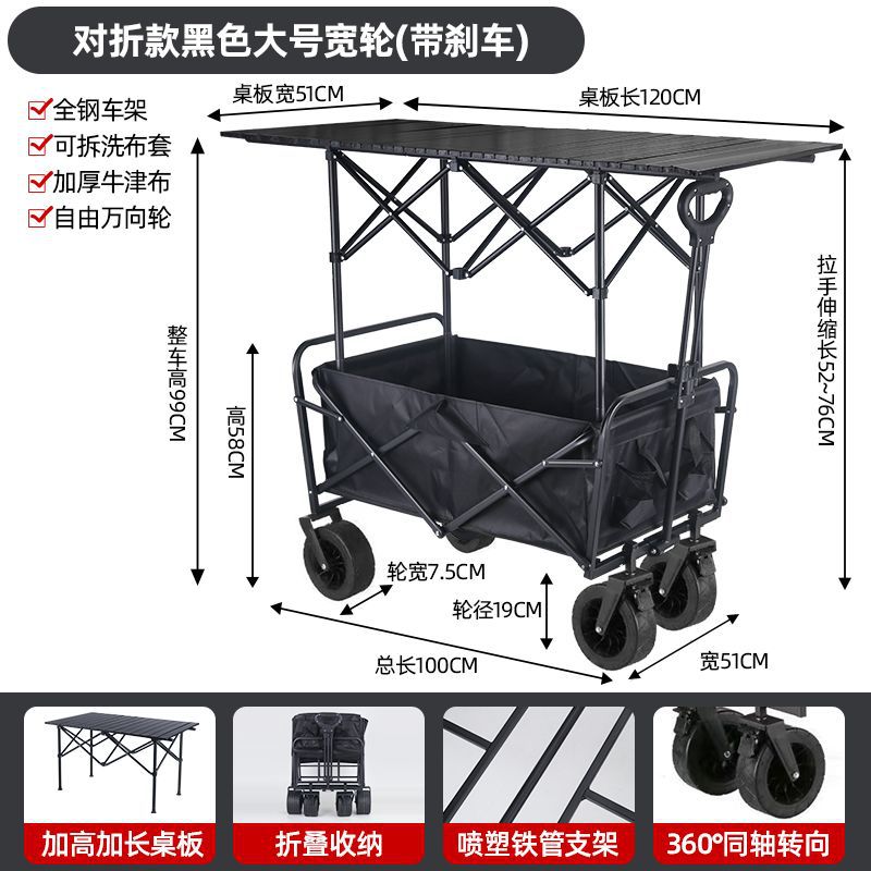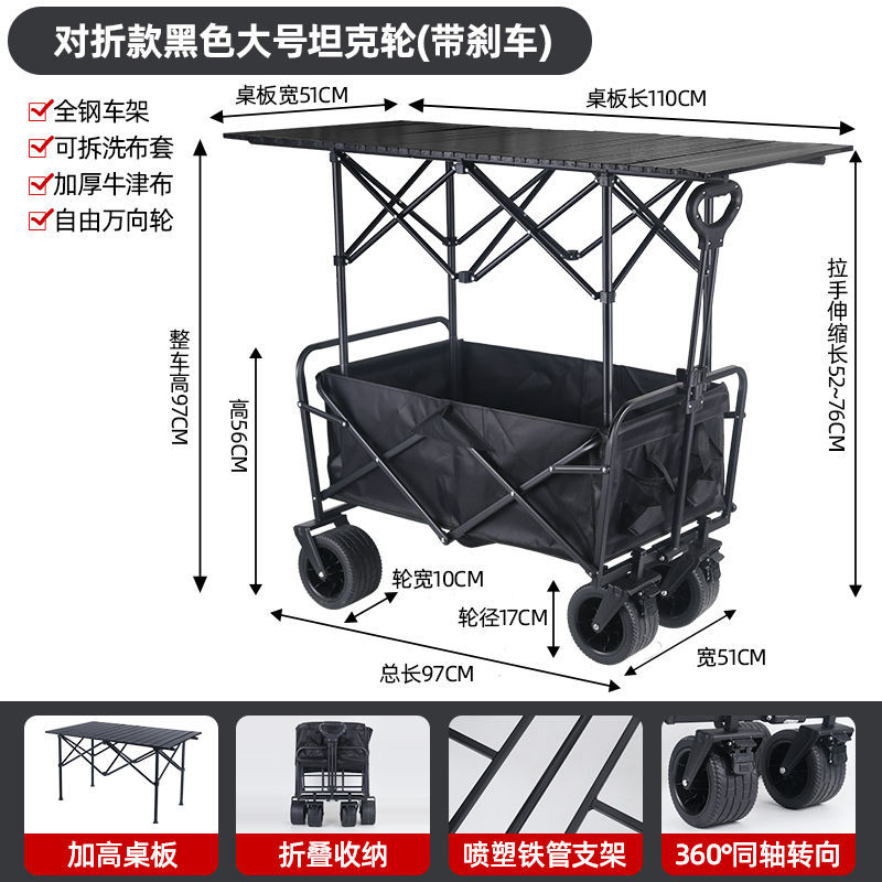 • 카트 + 접이식 테이블 - 이중 브레이크가 장착된 검정색 오프로드 휠