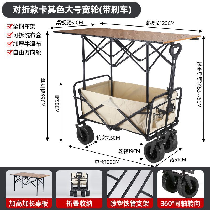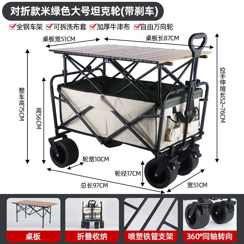 • 카트 + 접이식 테이블 - 이중 브레이크가 장착된 카키색 오프로드 휠