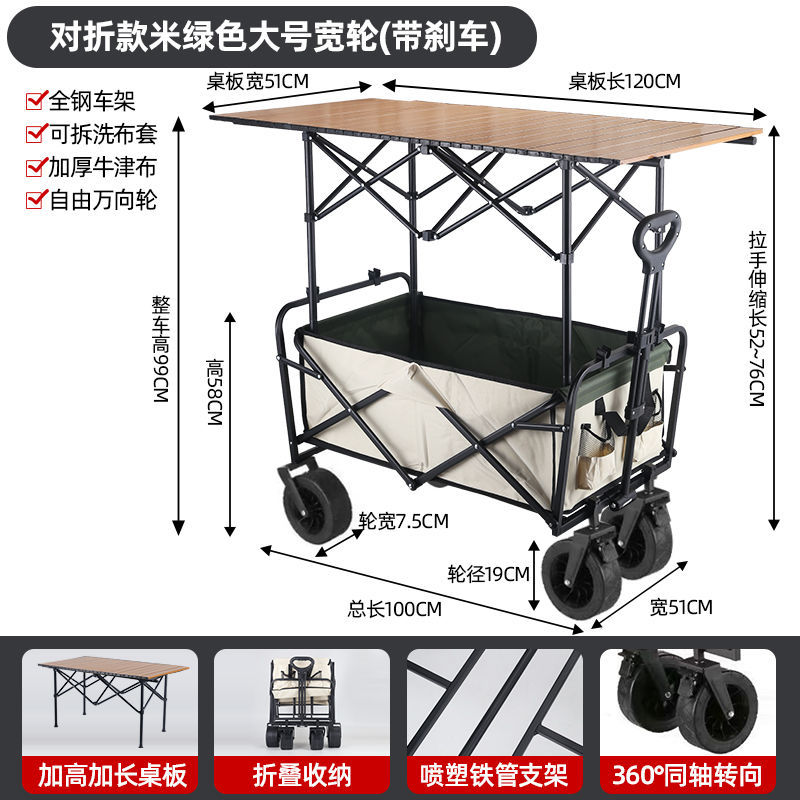 • 카트 + 테이블 87*51*50-카키 오프로드 휠(더블 브레이크 포함)