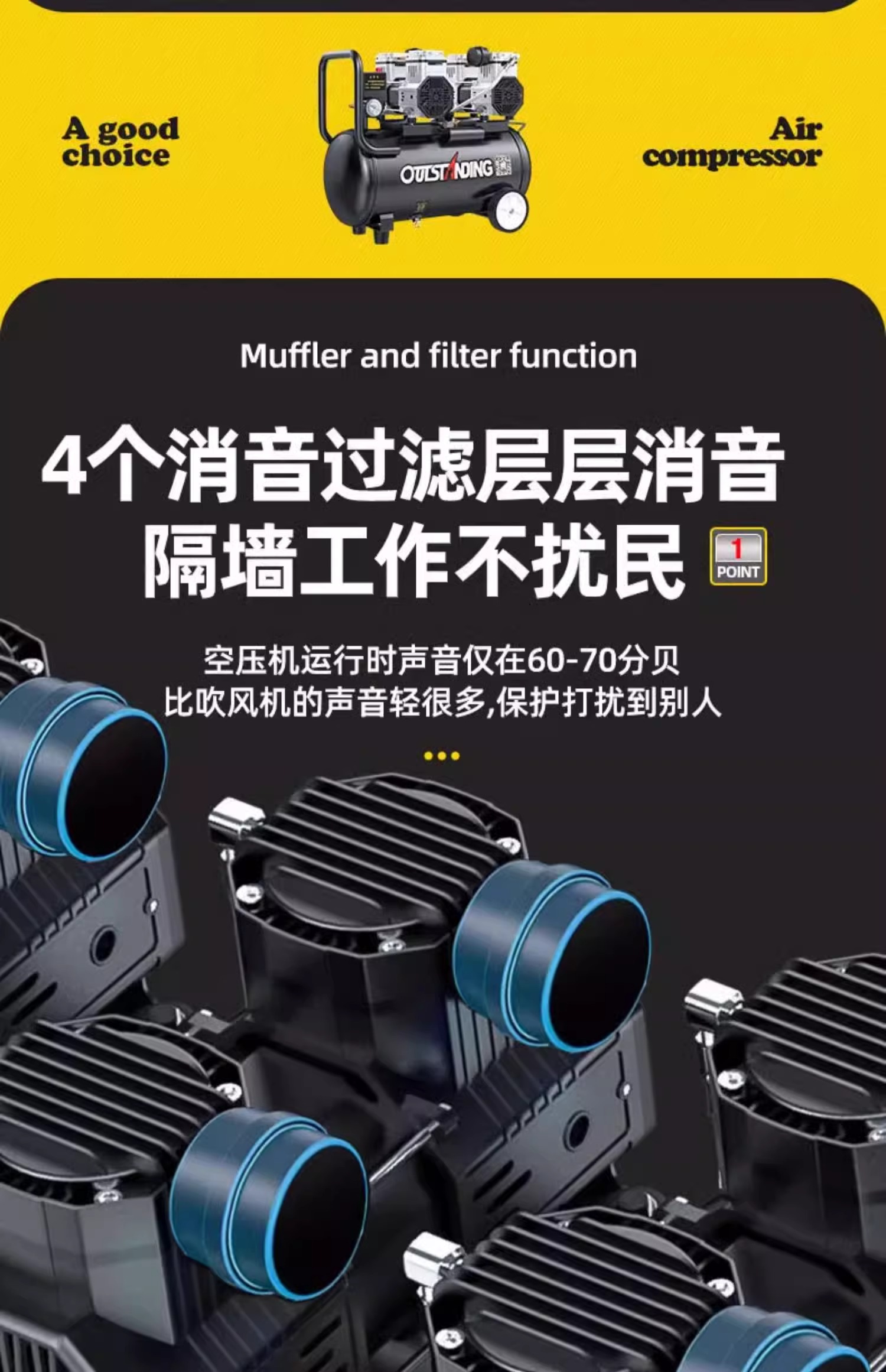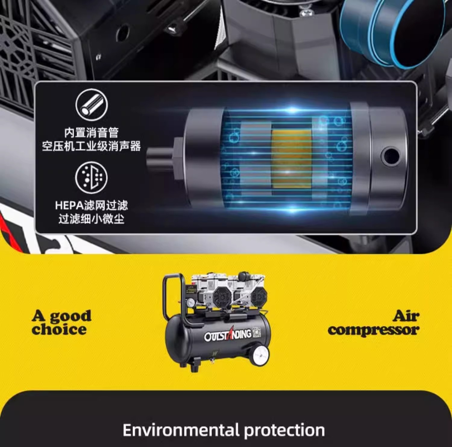 Spot Otus 공기 압축기 소형 공기 펌프 목공 스프레이 페인트 장식 고압 스프레이 220V 무소음 오일 프리
