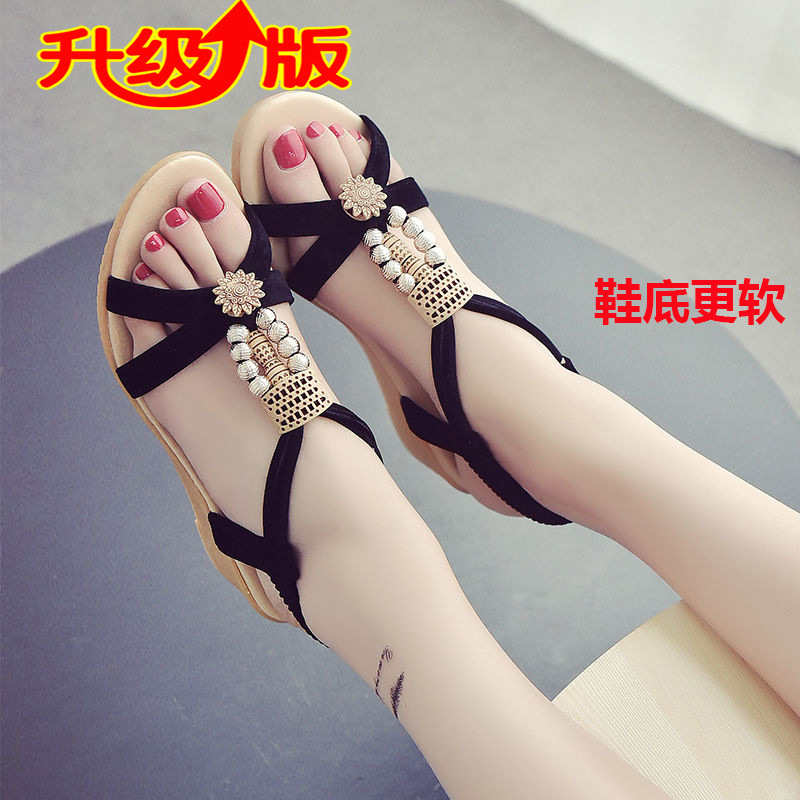한국식 여름 신작 여성 웨지 샌들, 여성 플랫 소프트 솔 여학생 신발, 두꺼운 밑창 미드 힐 피쉬 입 여성 신발스토어 가기