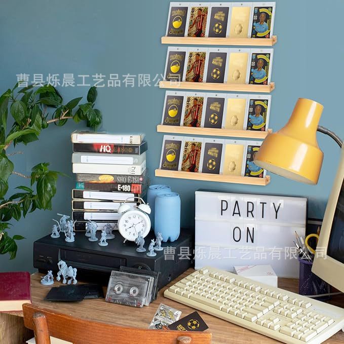 나무 트레이딩 카드 스탠드 스타 스포츠 카드 등급 카드 디스플레이 스탠드 야구 카드 프레임 벽 사진 보관 선반