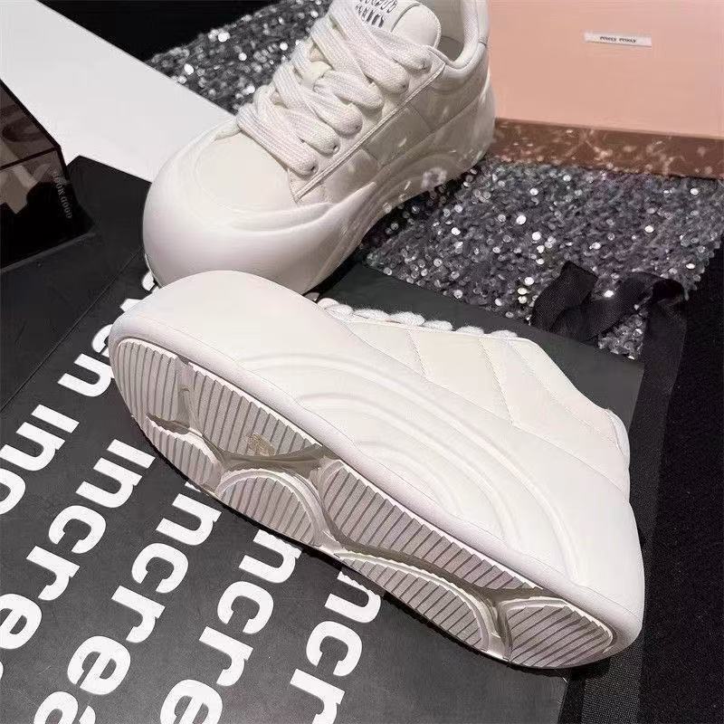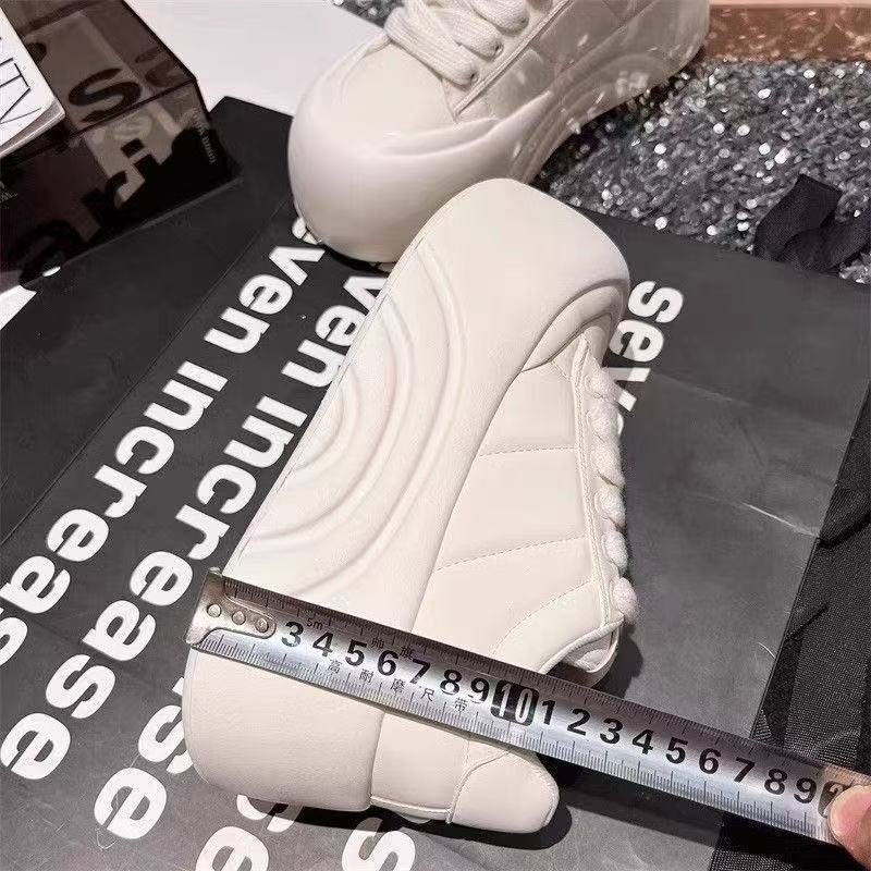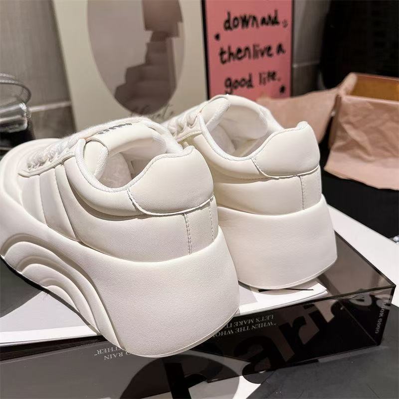 여성용 두꺼운 밑창 브레드보드 슈즈, 귀여운 빅 헤드 가죽 화이트 슈즈, 2024 가을 신상 작은 키 키 큰 플랫폼 슈즈스토어 가기
