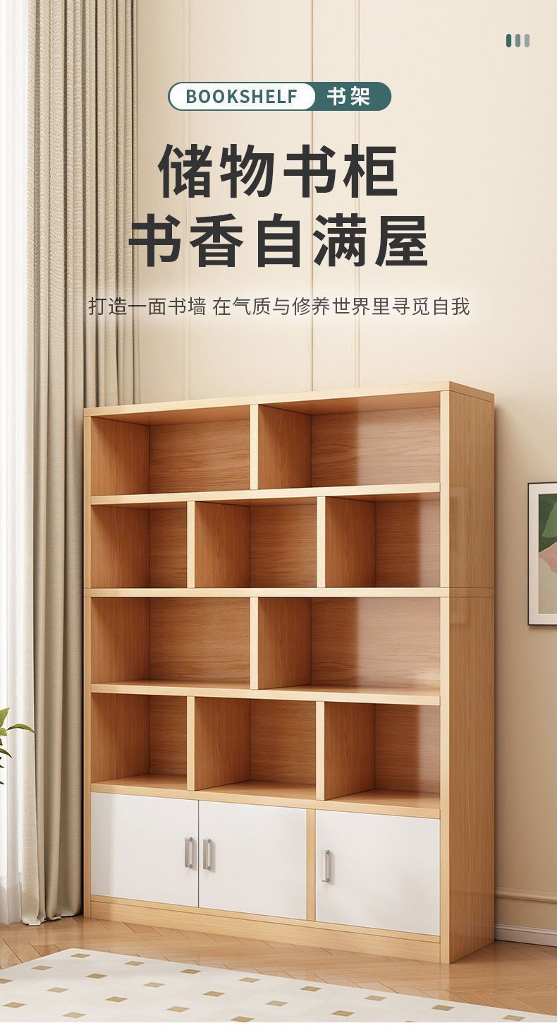 간단한 책장 다층 벽걸이형 사무실 거실 보관 캐비닛 가정용 보관 랙 학생 나무 캐비닛 바닥에서 천장까지 책장