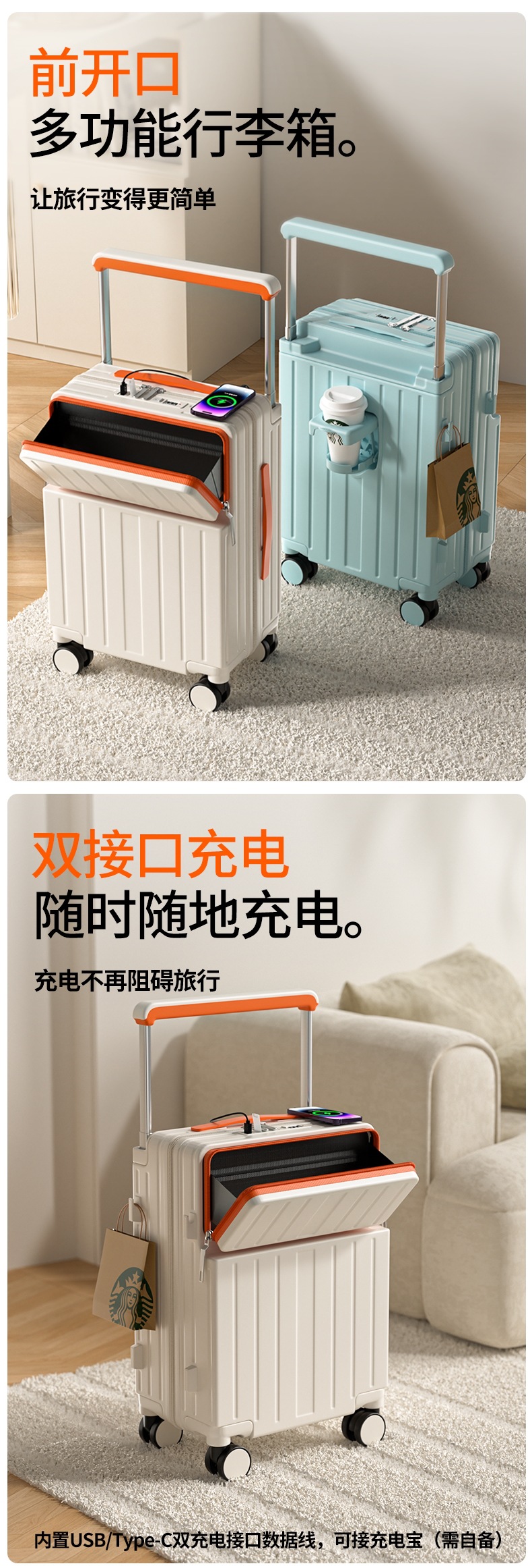 새로운 프론트 오픈 가방 여성용 와이드 트롤리 다기능 20inch 탑승 대용량 24inch 여행용 트롤리 케이스 남성용스토어 가기