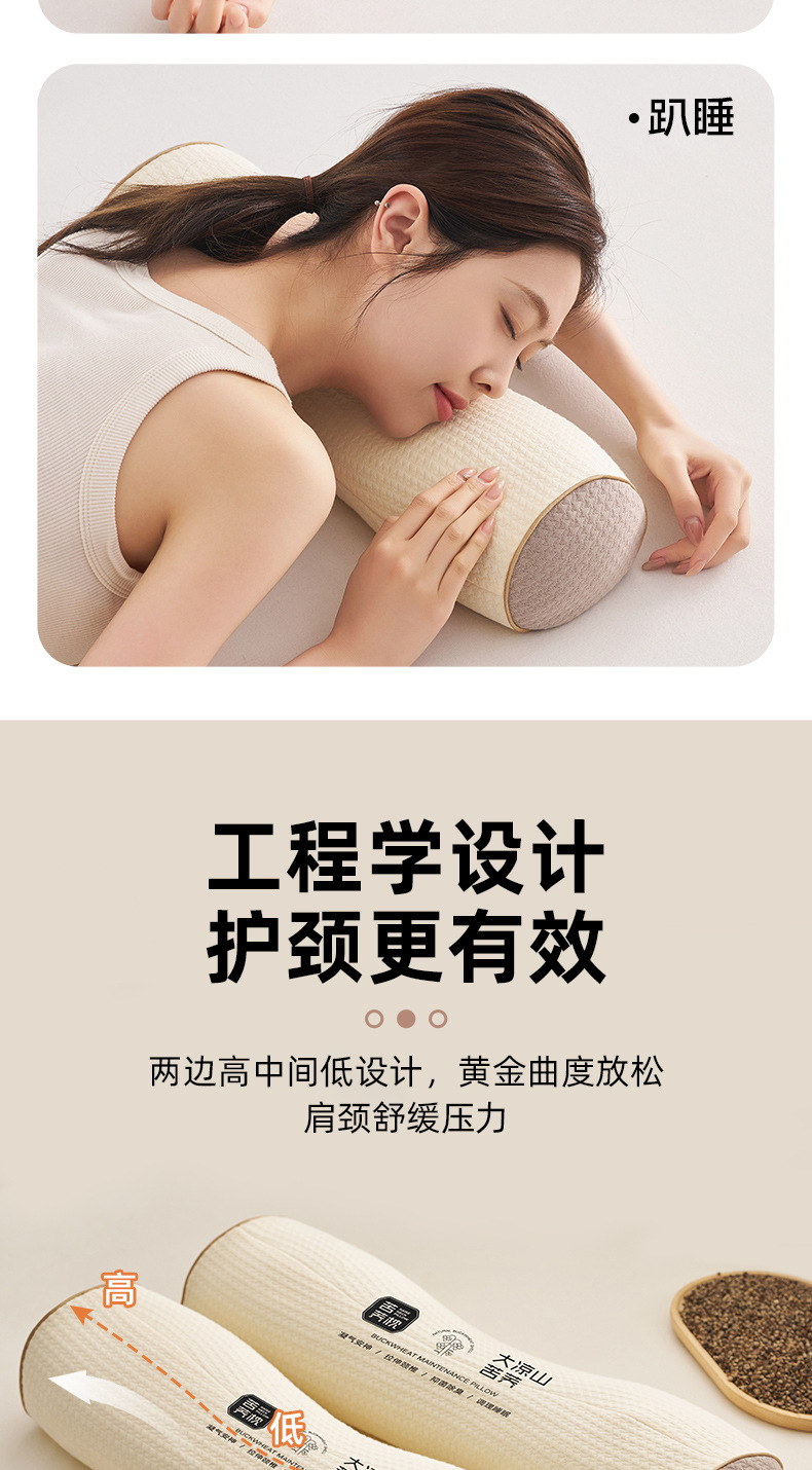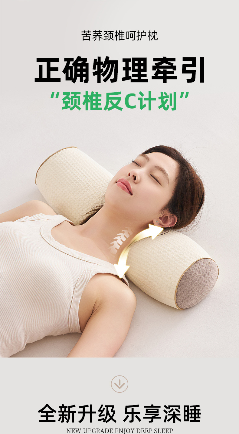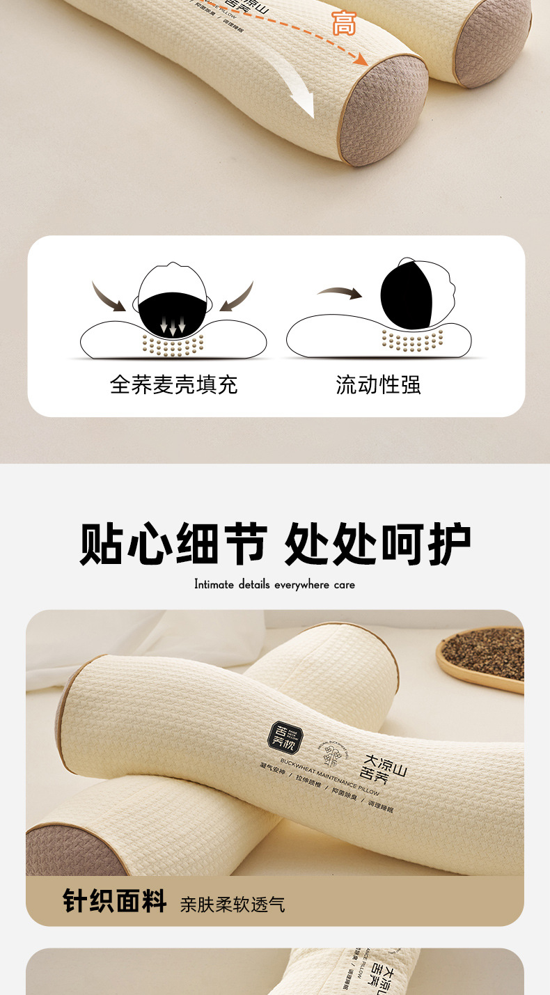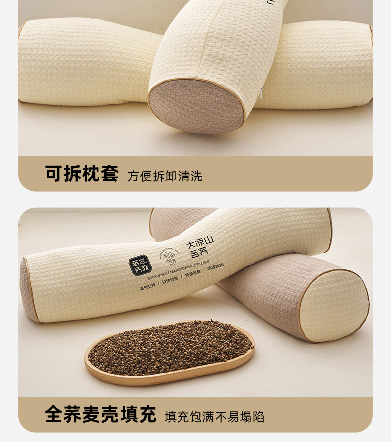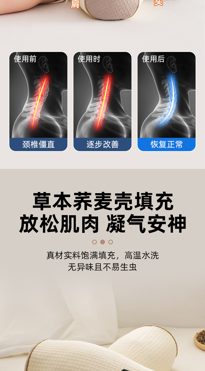 메밀베개, 목보호대, A급 메밀껍질베개심, 성인용 허리베개, 탈부착 및 세탁 가능한 건강베개, 경추트랙터베개