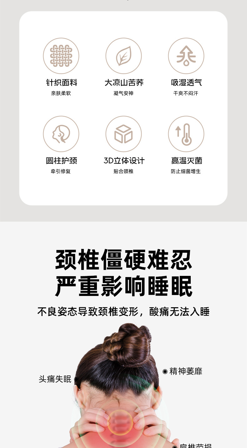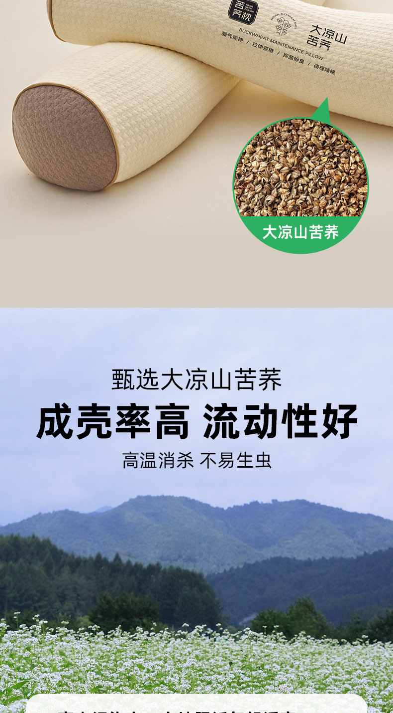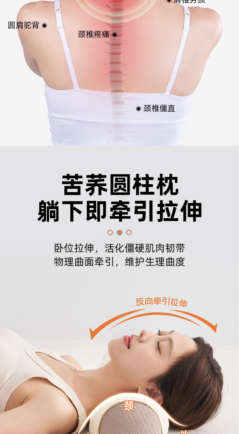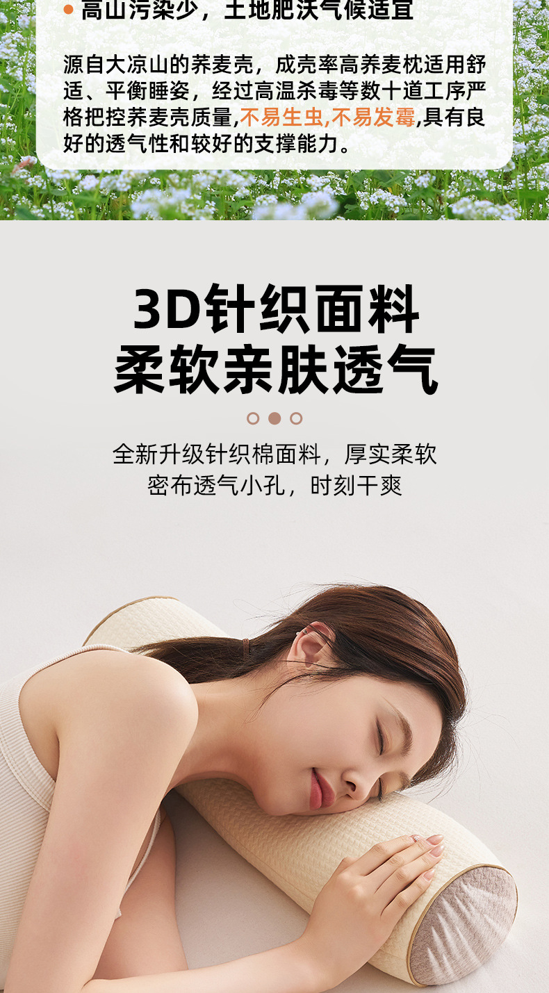 메밀베개, 목보호대, A급 메밀껍질베개심, 성인용 허리베개, 탈부착 및 세탁 가능한 건강베개, 경추트랙터베개