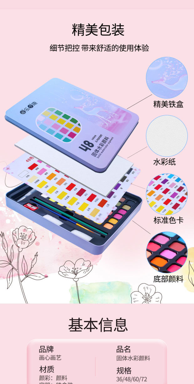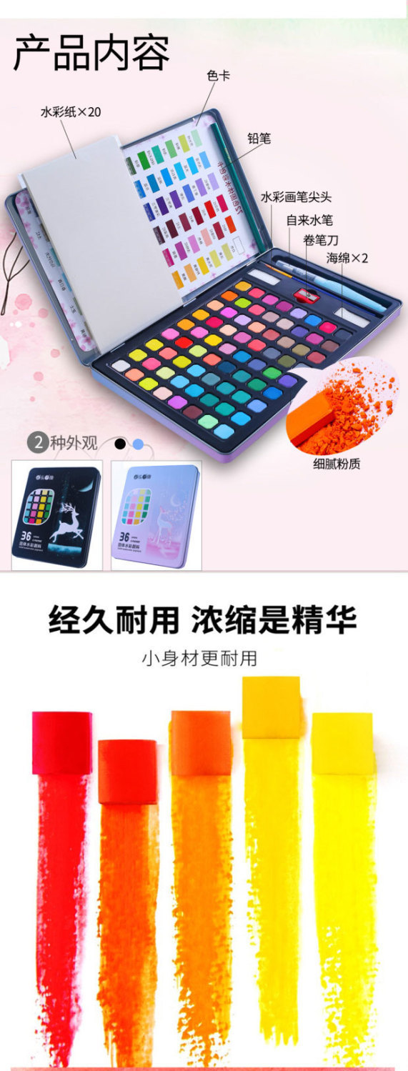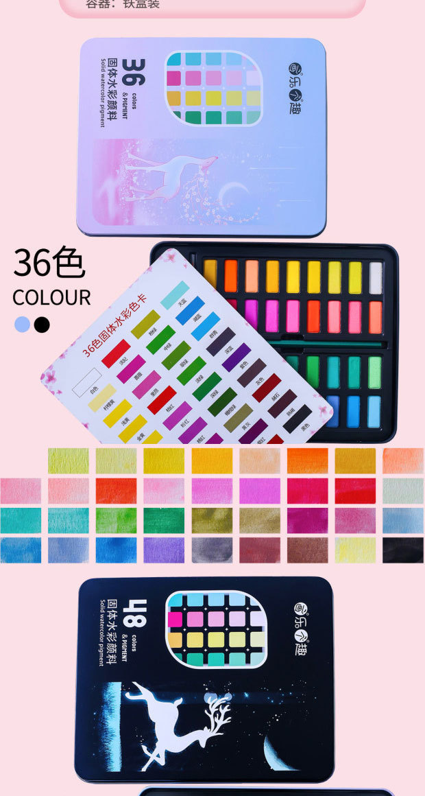 초보자를위한 수채화 물감 세트 학생을위한 구 아슈 그림 24/3648 색상 전문 미술 솔리드 직접 판매스토어 가기