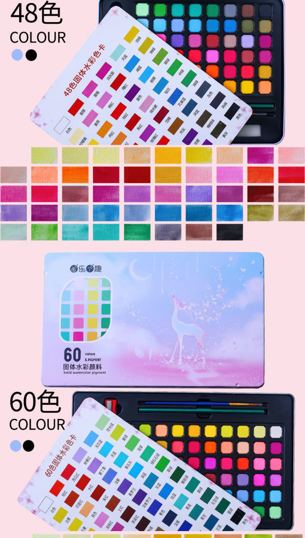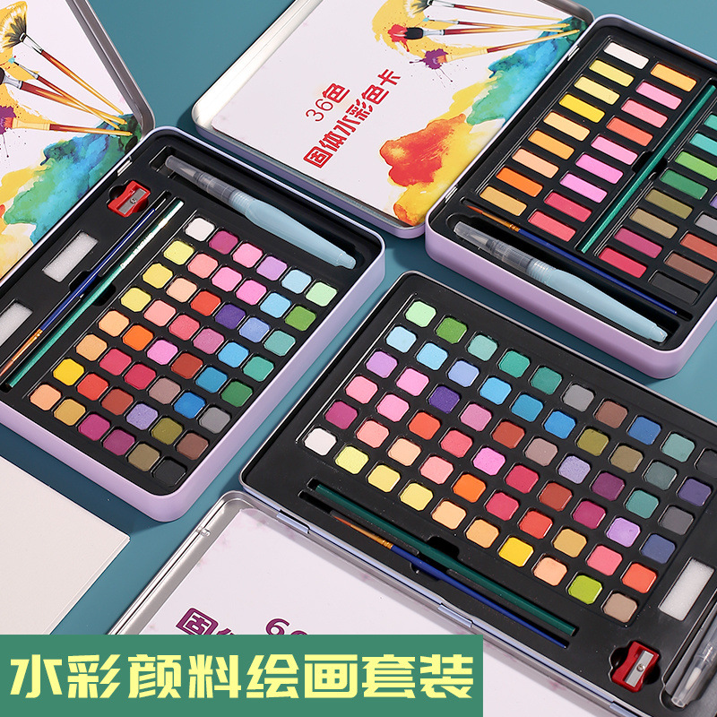 초보자를위한 수채화 물감 세트 학생을위한 구 아슈 그림 24/3648 색상 전문 미술 솔리드 직접 판매