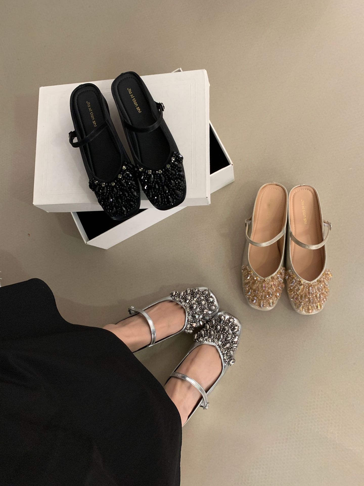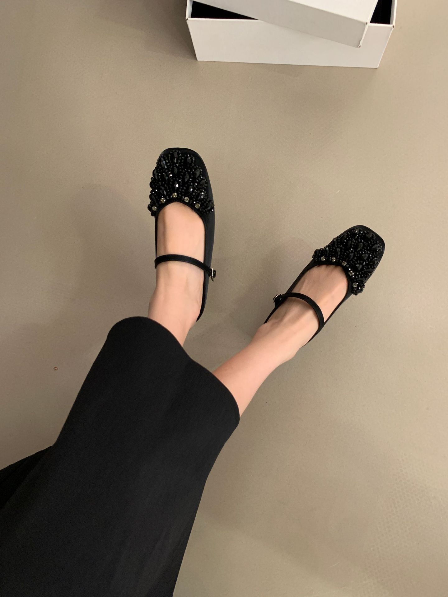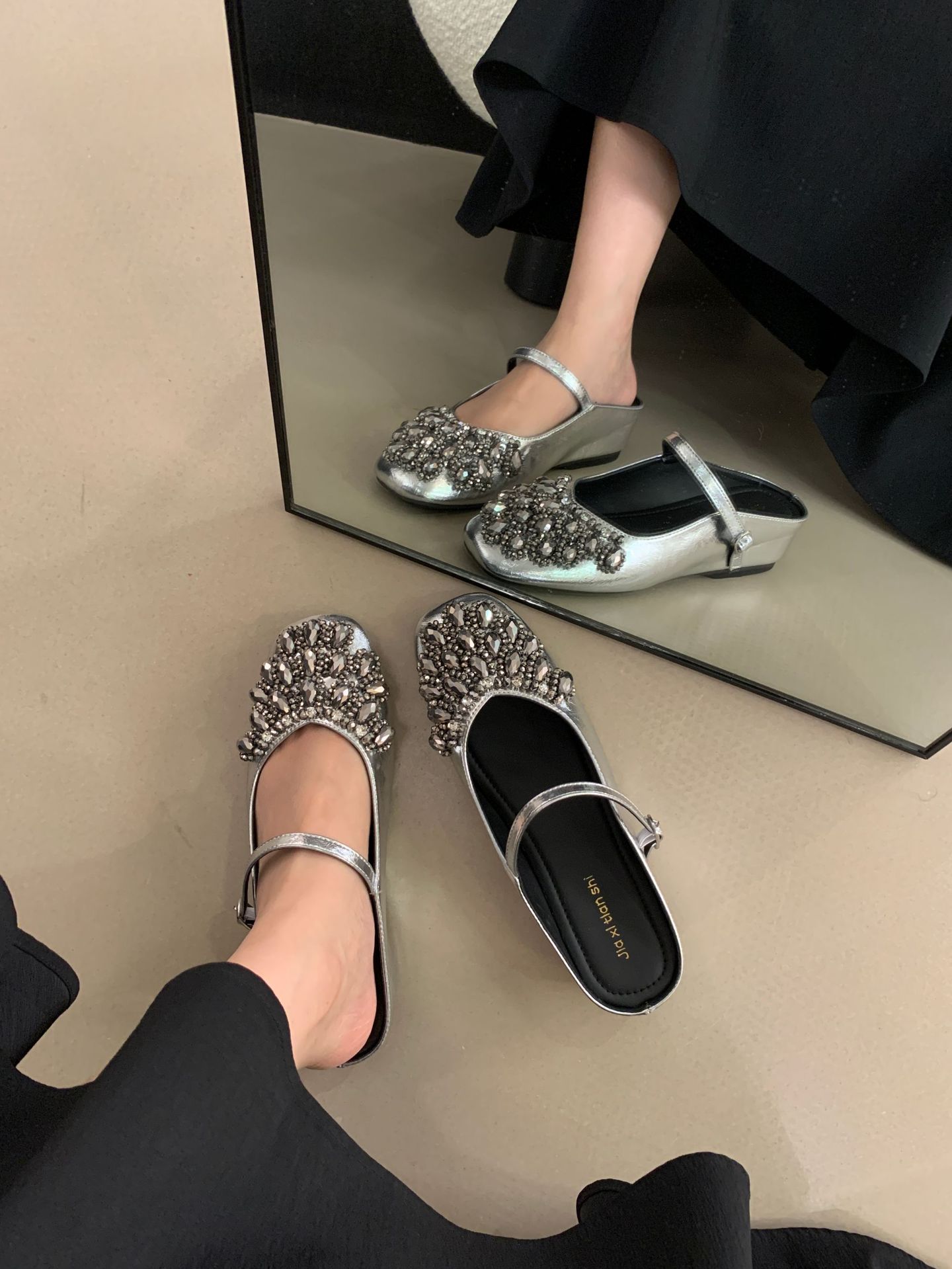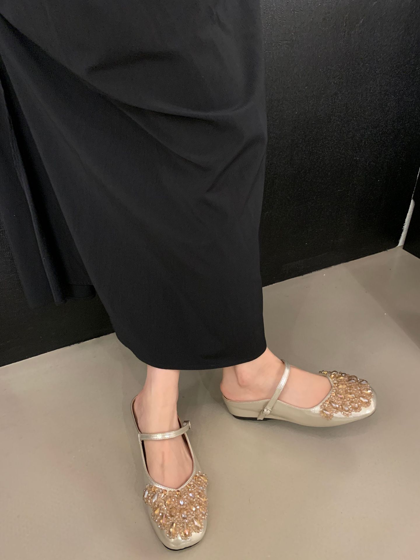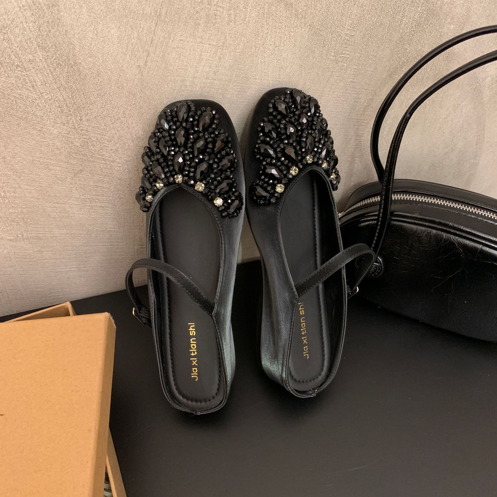 여성을위한 바오 터우 샌들 2025 여름 새로운 스타일 요정 스타일 패션 라인 석 버클 플랫 바닥 얕은 입 내부 높이 증가 신발