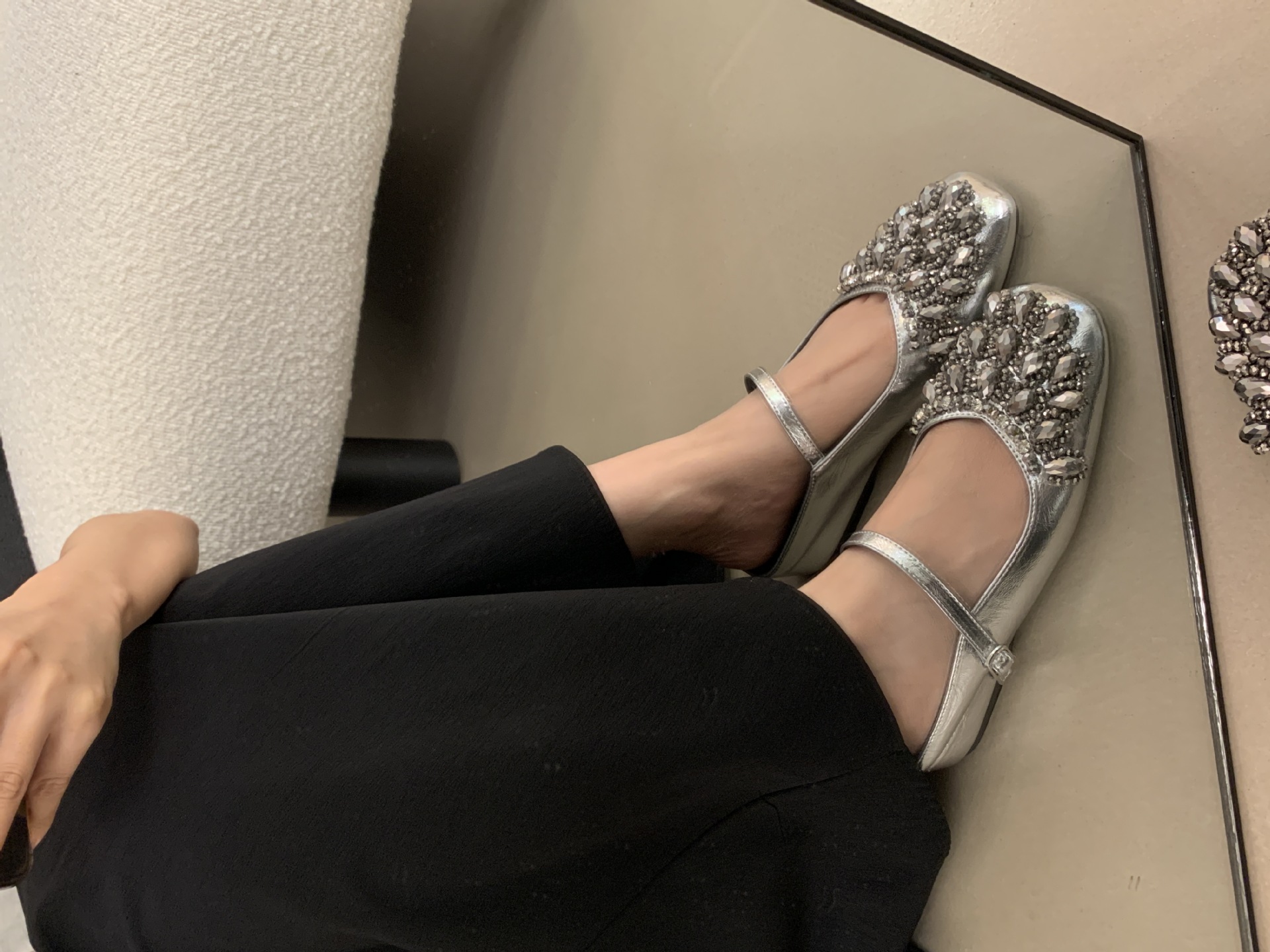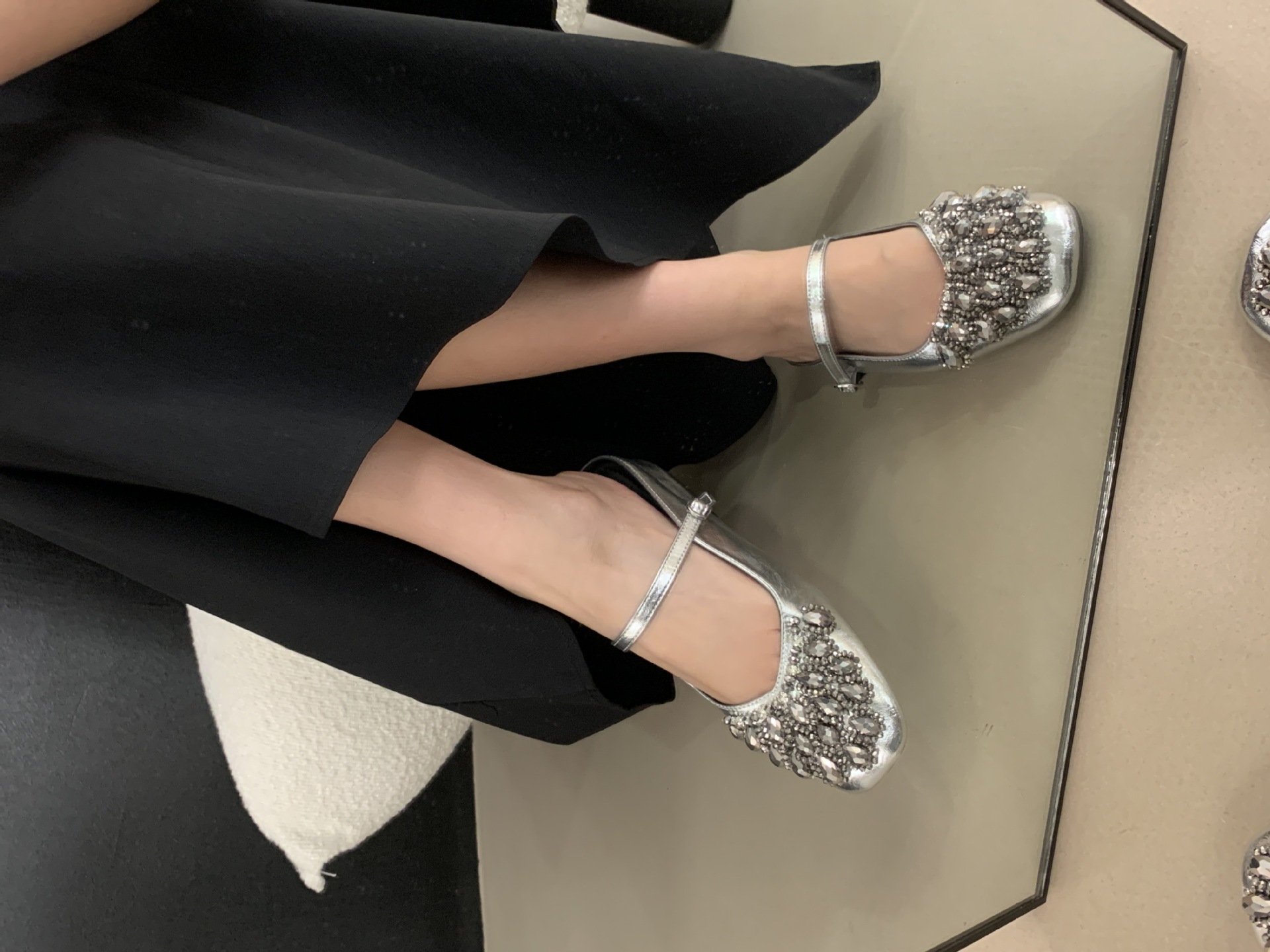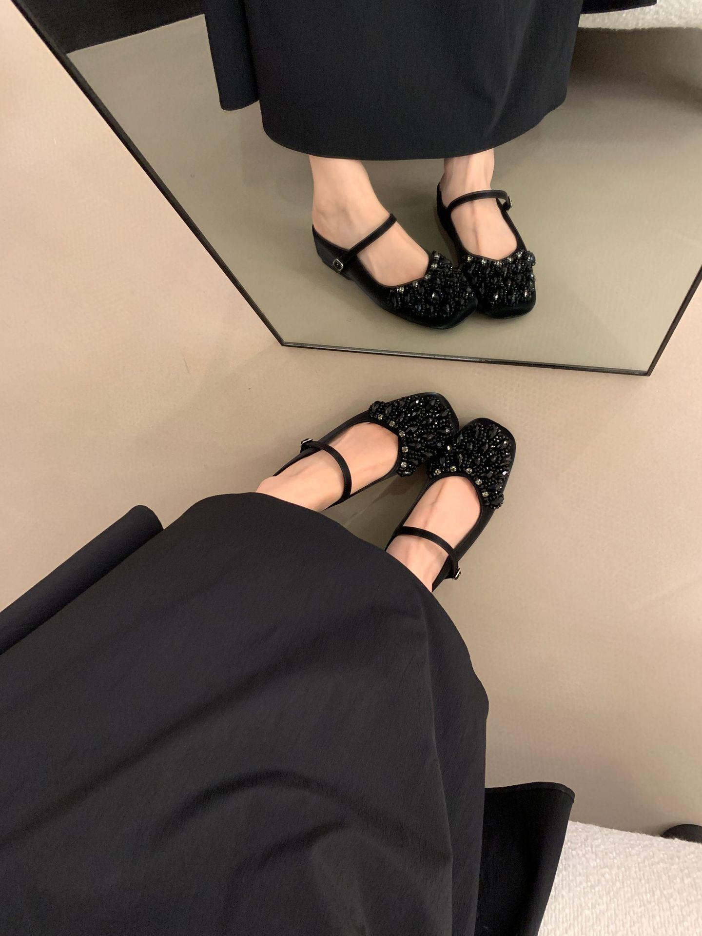 여성을위한 바오 터우 샌들 2025 여름 새로운 스타일 요정 스타일 패션 라인 석 버클 플랫 바닥 얕은 입 내부 높이 증가 신발스토어 가기