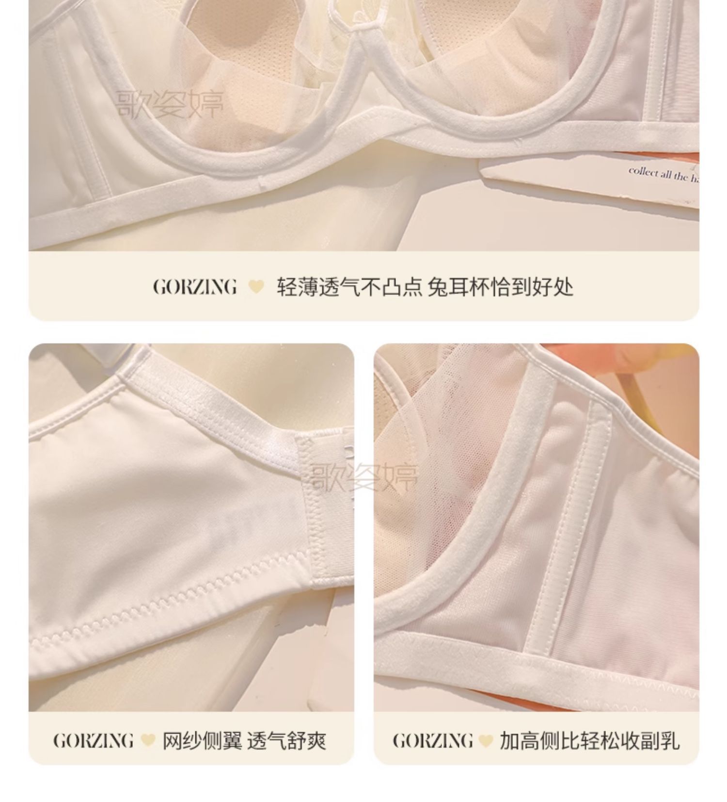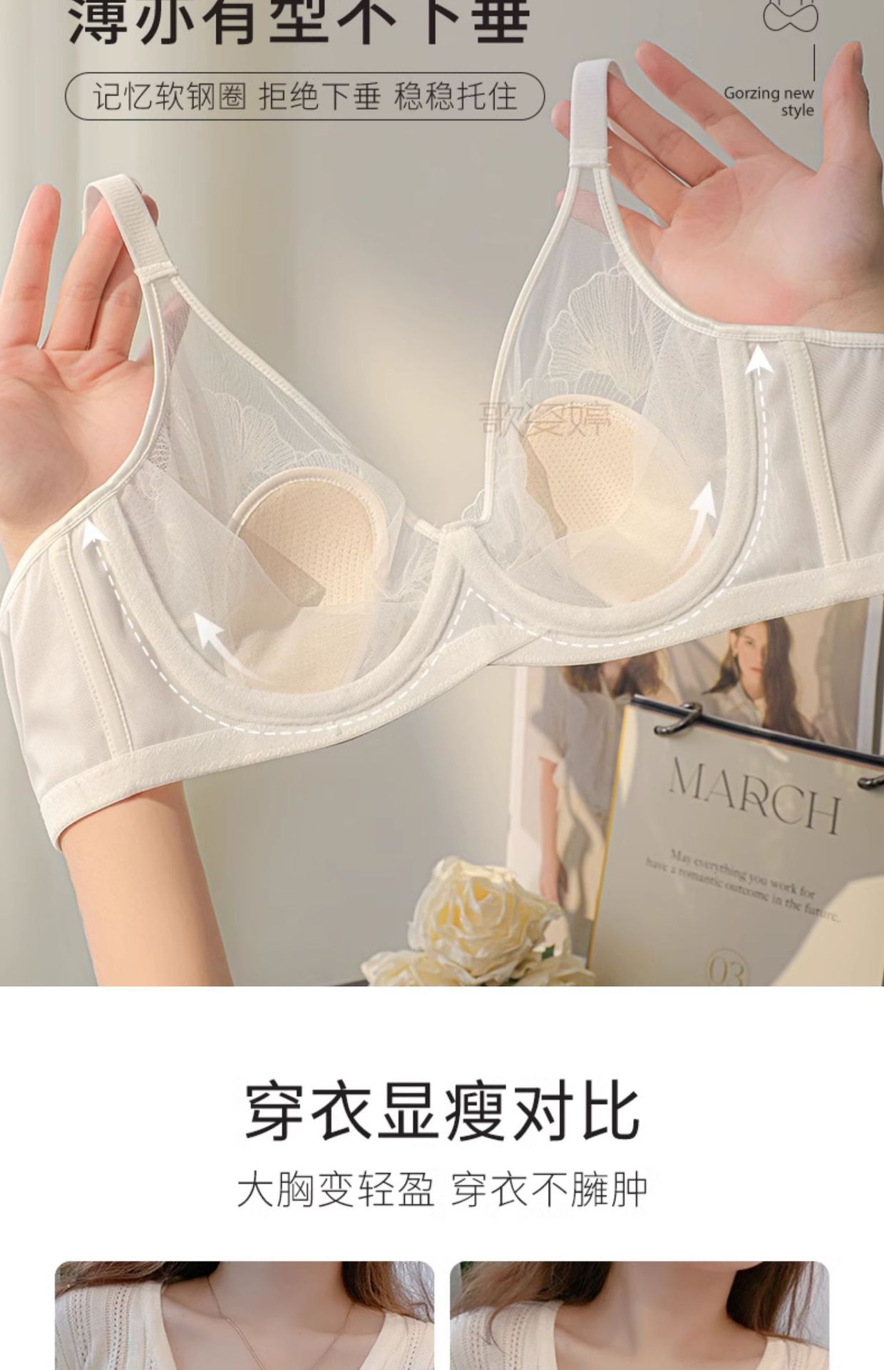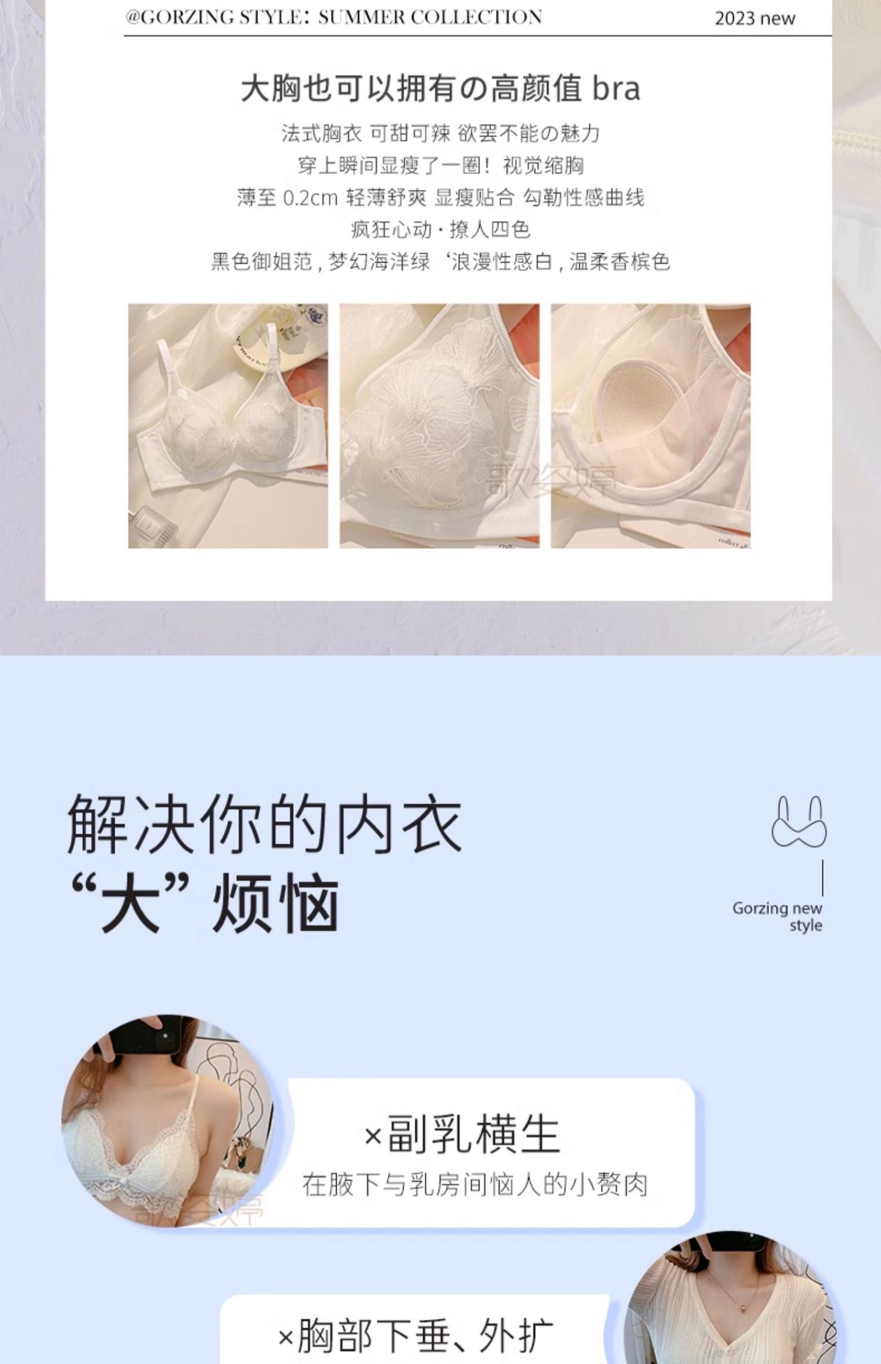 큰 가슴을 가진 여성을 위한 작은 속옷, 부드러운 강철 링, 가슴 축소, 처짐 방지 브랜드 토끼 귀 컵, 여름용 초박형 브라