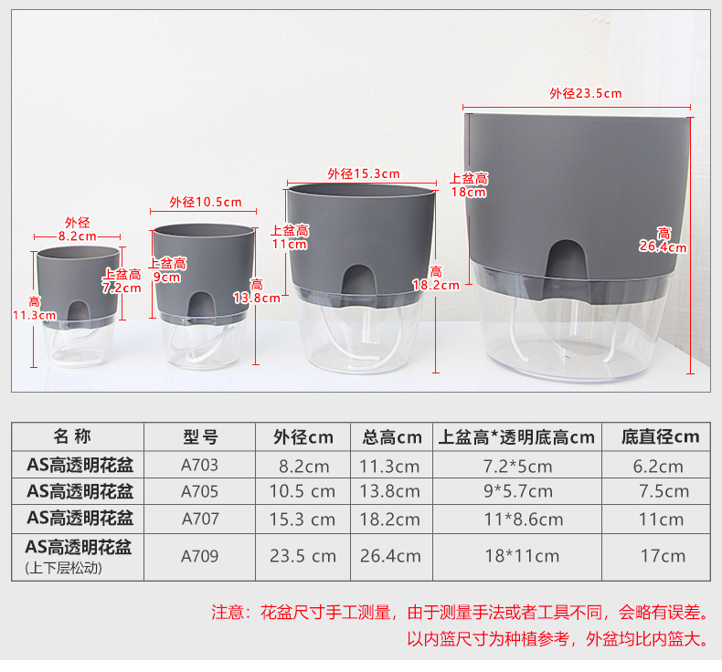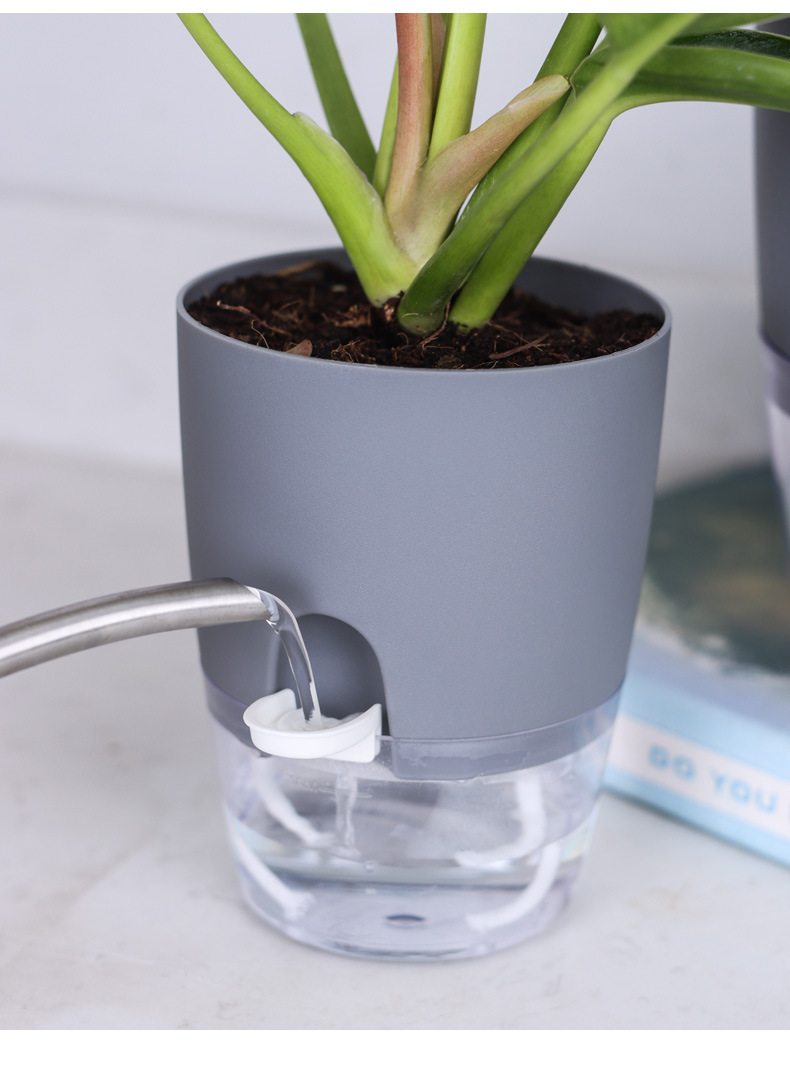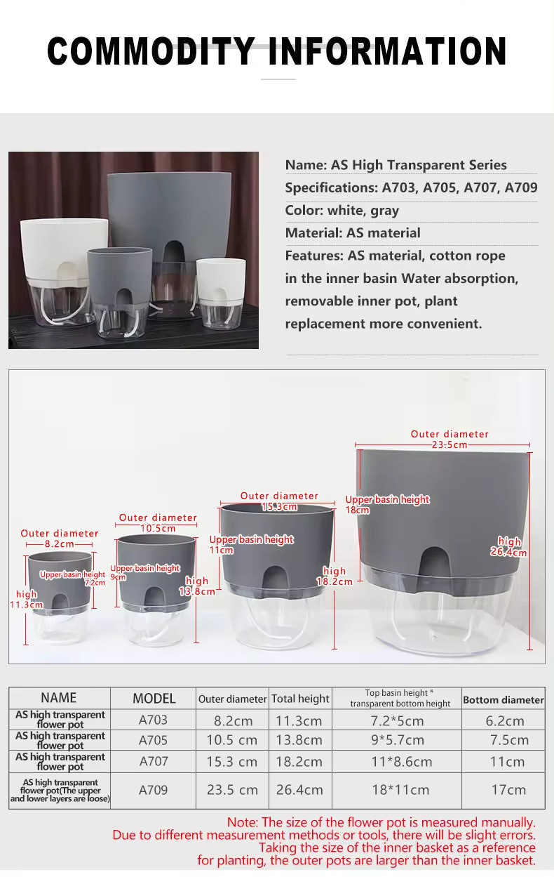 Olinze 플라스틱 화분 가정용 자체 흡수성 게으른 화분 간단한 투명 이중층 화분 다육 화분 작은 화분스토어 가기