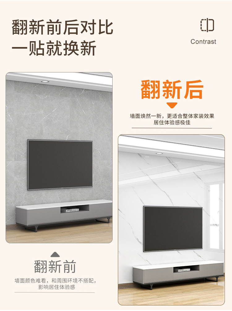 대리석 벽지 자체 접착 방수 및 방습 홈 TV 배경 벽 벽 장식 모조 타일 벽