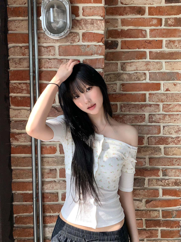 MR [Meiling Jacquard] 여름에 입기 좋은 여성용 아메리칸 스몰 플로럴 스플라이스 페이크 투피스 원숄더 티셔츠스토어 가기