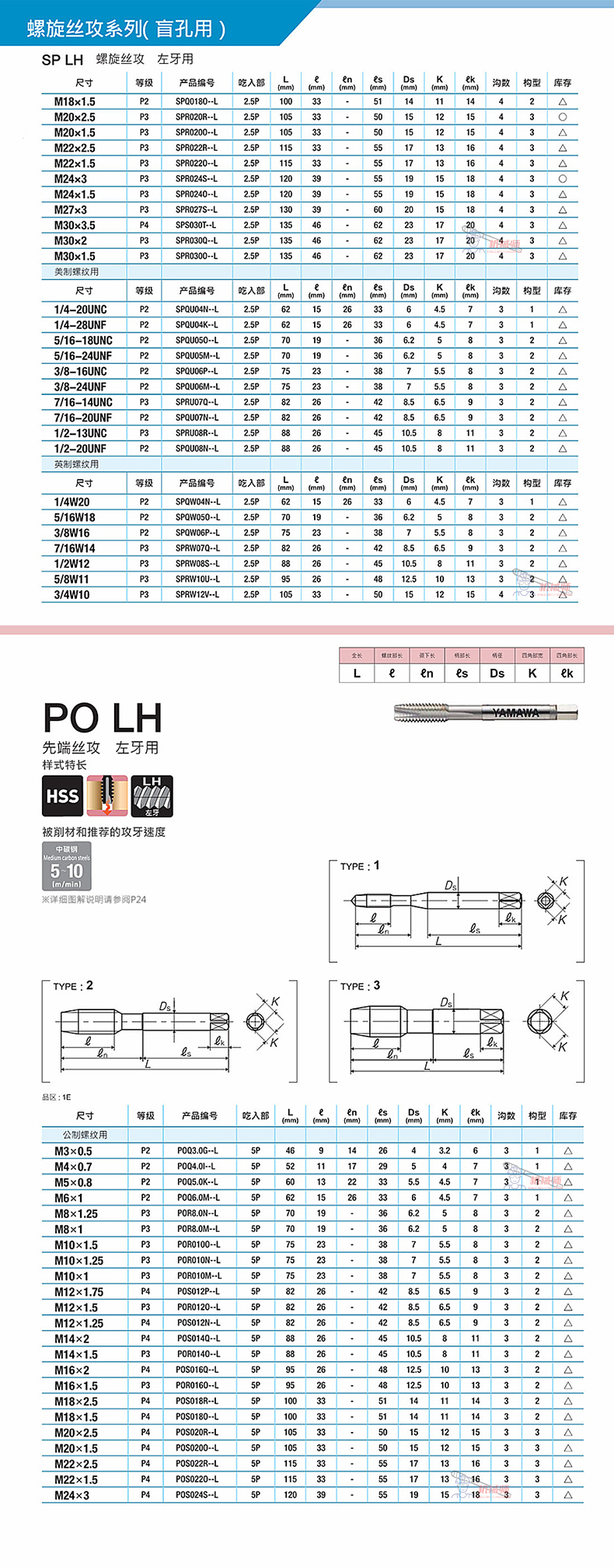 Z-PRO YAMAWA 왼쪽 나사 역방향 나사 나사 탭 UNC/UNF 미터법 M 왼쪽 나사 역방향 나사 끝 나사 탭