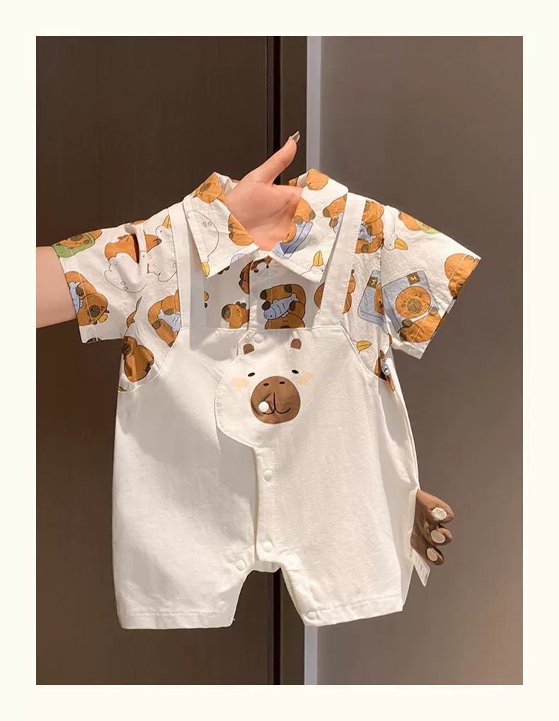 영유아복, 여름용 얇은 반팔 점프수트, 남아용 여름옷, 순면 가운, 신생아 외출복