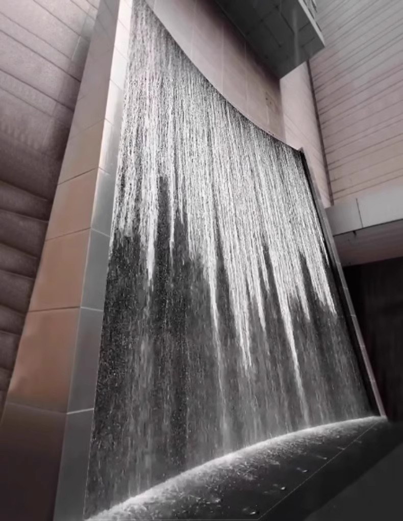 조수 수경 워터 커튼 벽 제어 가능한 폭포 벽 배출구 실내 조경 흐르는 물 풀 분수 금속 메쉬 흐르는 물 벽