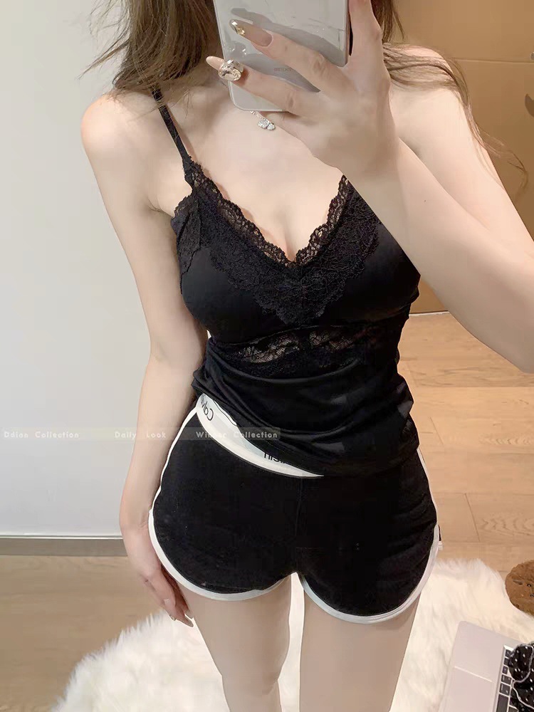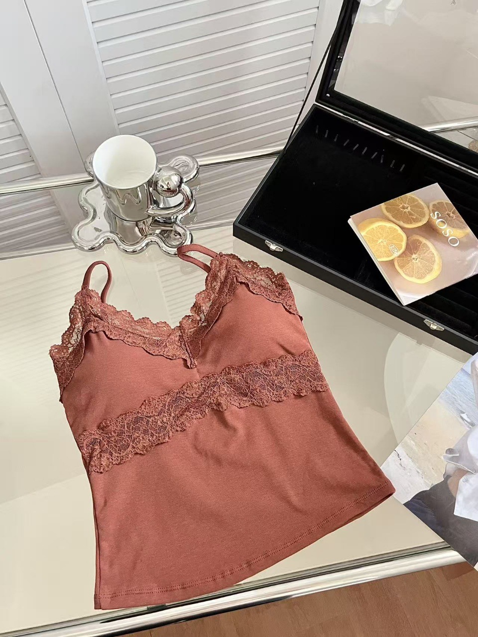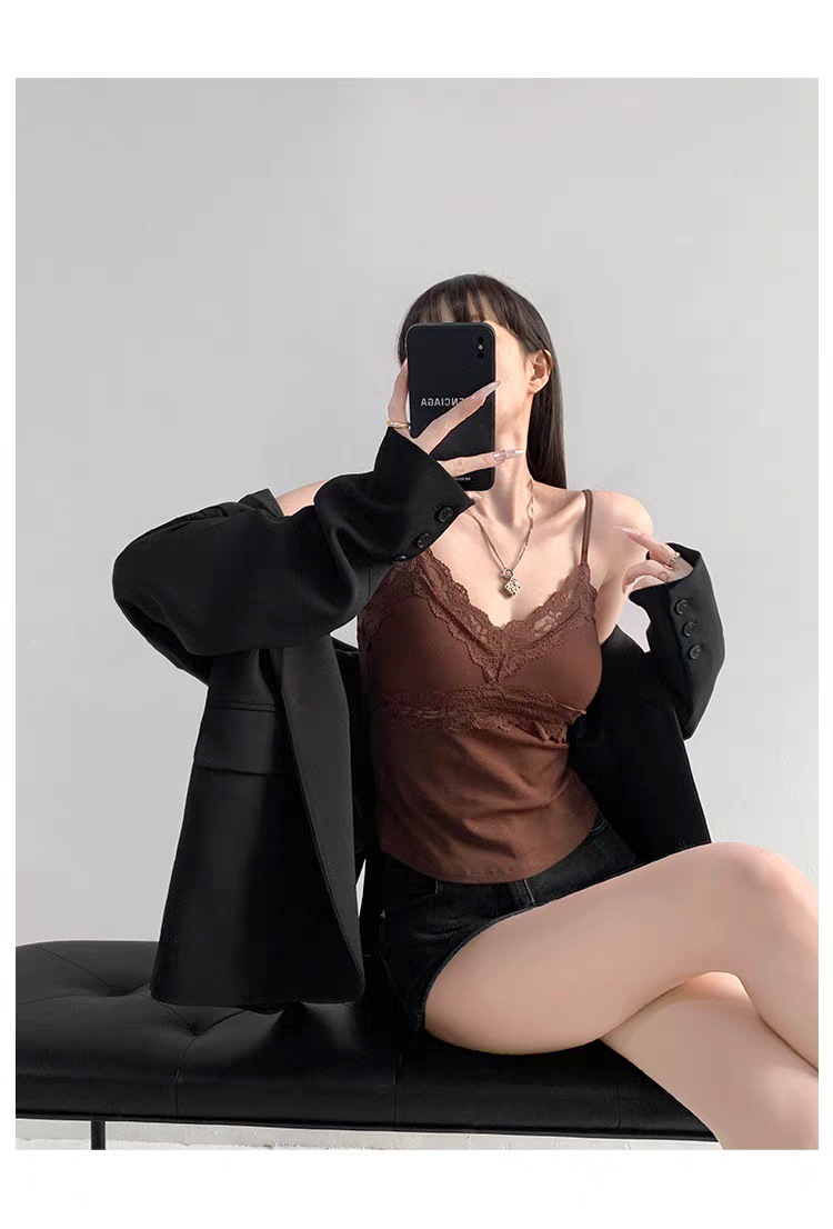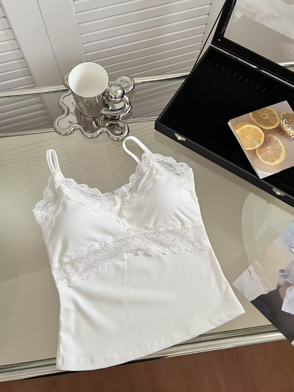 210g 코튼 캐미솔 퓨어 레이스 가슴 패드 내장 핫걸 브이넥 슬림하고 편안하며 섹시하고 다재다능한 여성용 아름다운 등