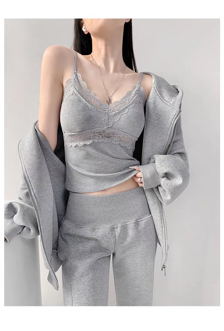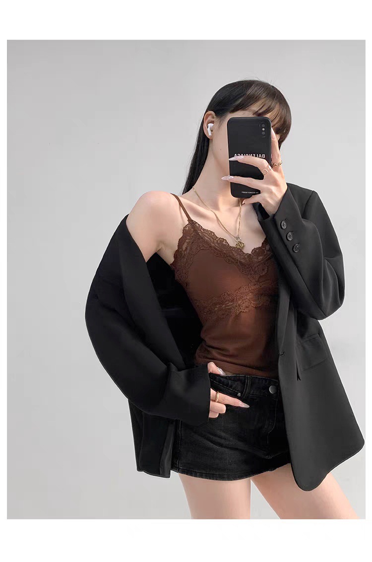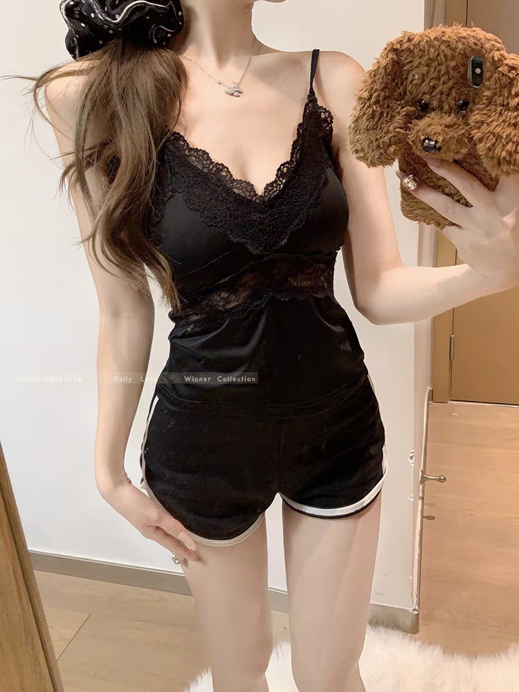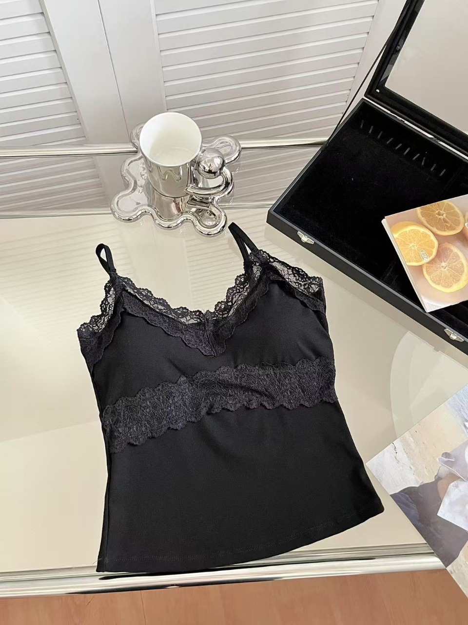 210g 코튼 캐미솔 퓨어 레이스 가슴 패드 내장 핫걸 브이넥 슬림하고 편안하며 섹시하고 다재다능한 여성용 아름다운 등
