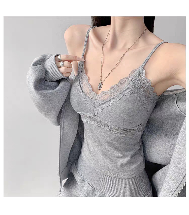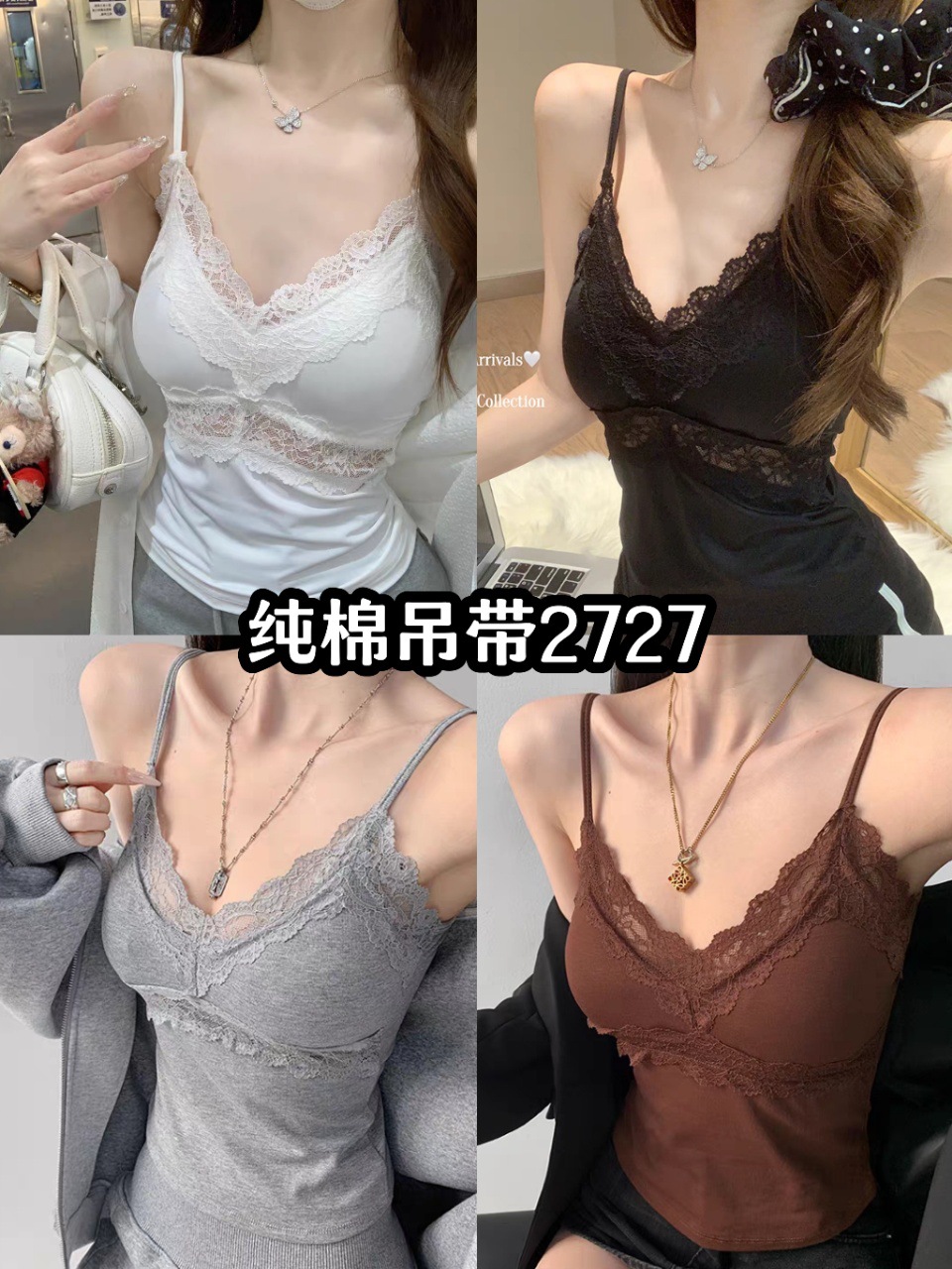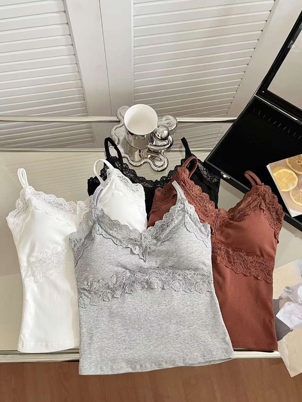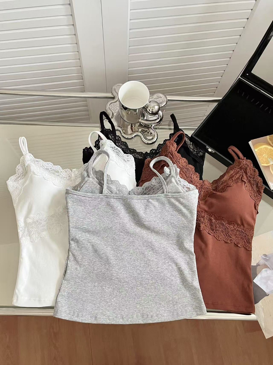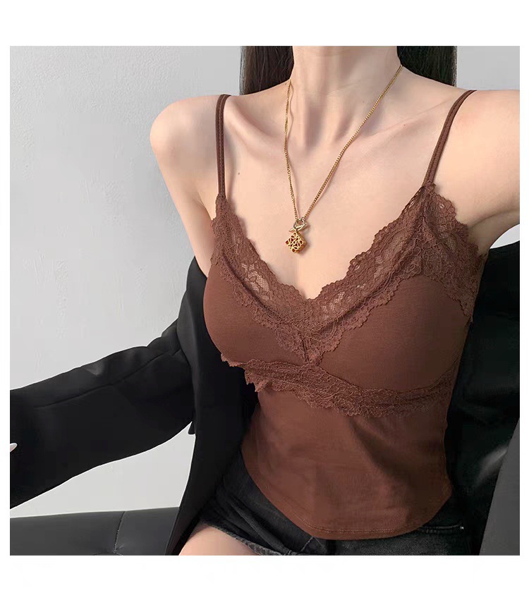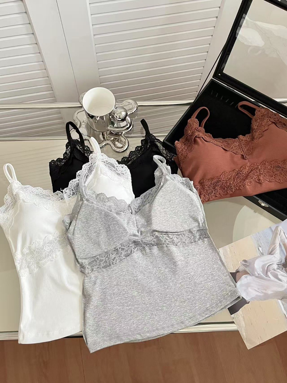 210g 코튼 캐미솔 퓨어 레이스 가슴 패드 내장 핫걸 브이넥 슬림하고 편안하며 섹시하고 다재다능한 여성용 아름다운 등스토어 가기