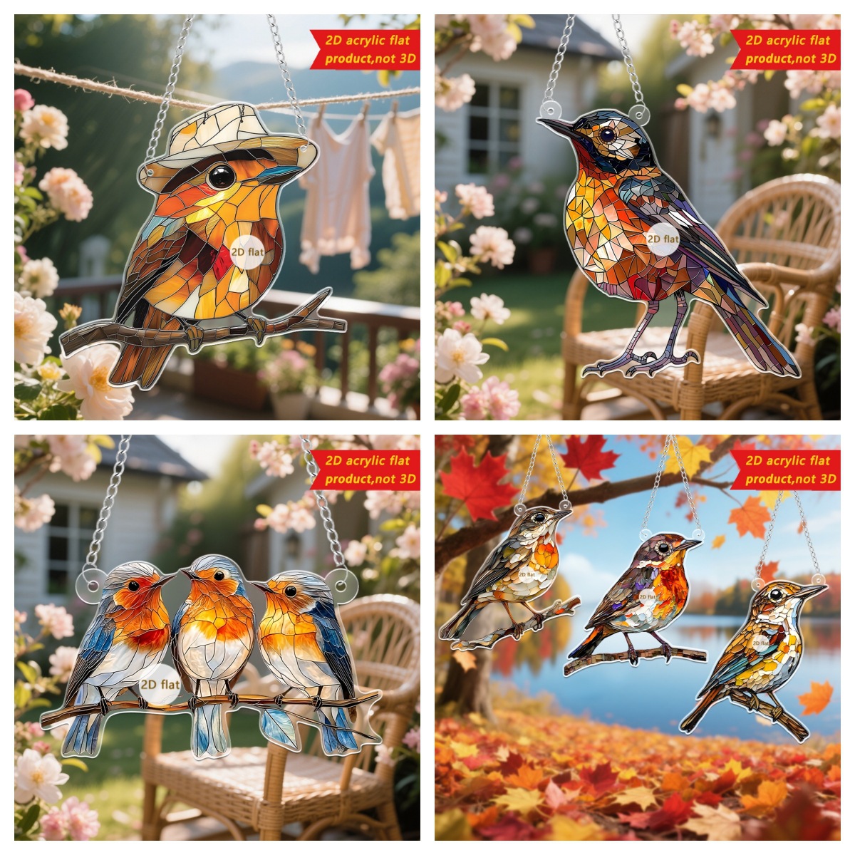 국경을 넘나드는 귀여운 가을 단풍잎 새 모자 2D 아크릴 문과 창문 정원 펜던트 장식 소품스토어 가기