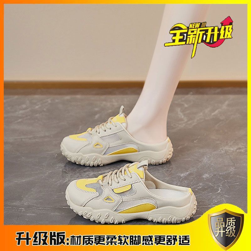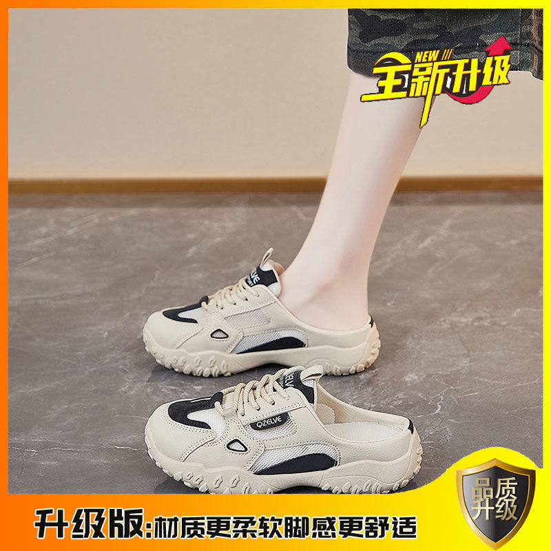 여성용 여름 하프 슬리퍼 2026년 신상 통기성 얇은 메쉬 슈즈 두꺼운 밑창 캐주얼 슬립온 레이지 화이트 슈즈스토어 가기