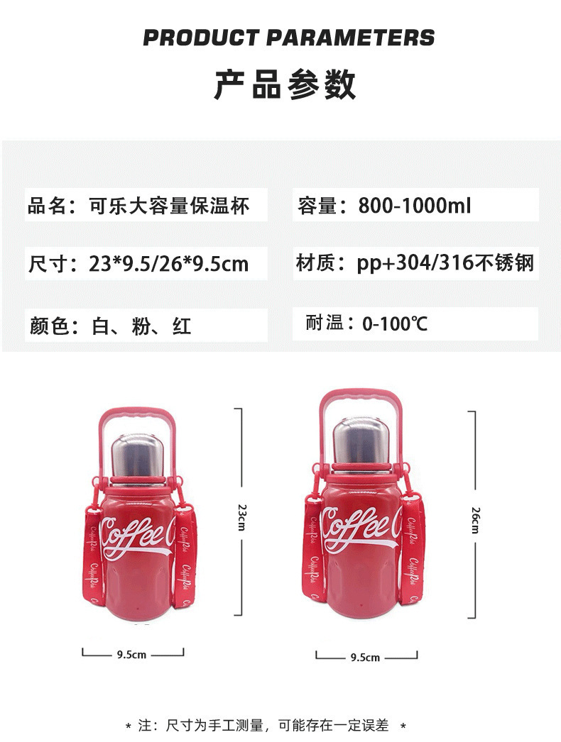 새로운 콜라 컵 스트랩 316 스테인레스 스틸 절연 컵 대용량 절연 주전자 남성과 여성을위한 휴대용 로프 선물 컵스토어 가기