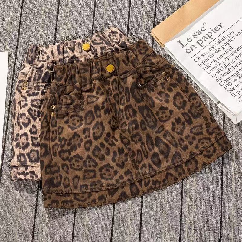 2025년 신상 여아 봄가을 호피무늬 짧은 치마, 아동용 패셔너블하고 다재다능한 베이직 스커트스토어 가기