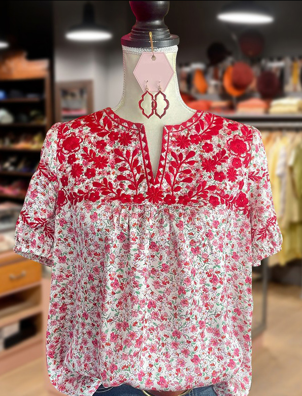 Amazon 2025wish 유럽과 미국의 국경 간 핫 스타일 중공업 자수 여성 v 넥 반팔 컬러 루즈 셔츠 티셔츠