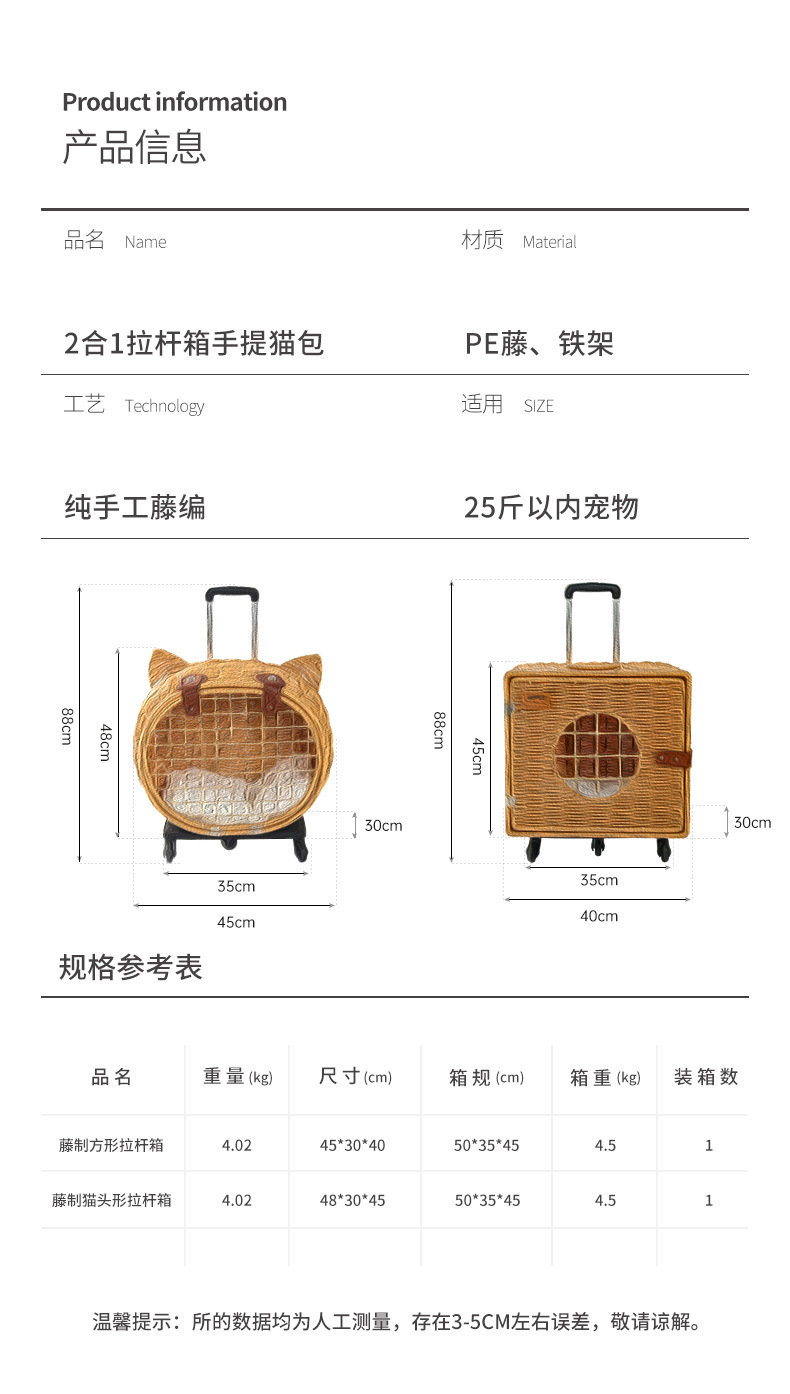 • 트롤리 여행 가방 고양이 가방
