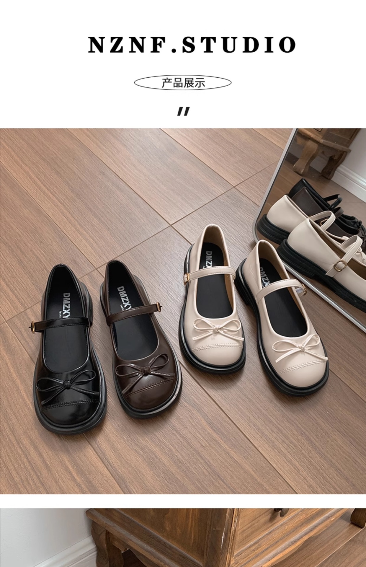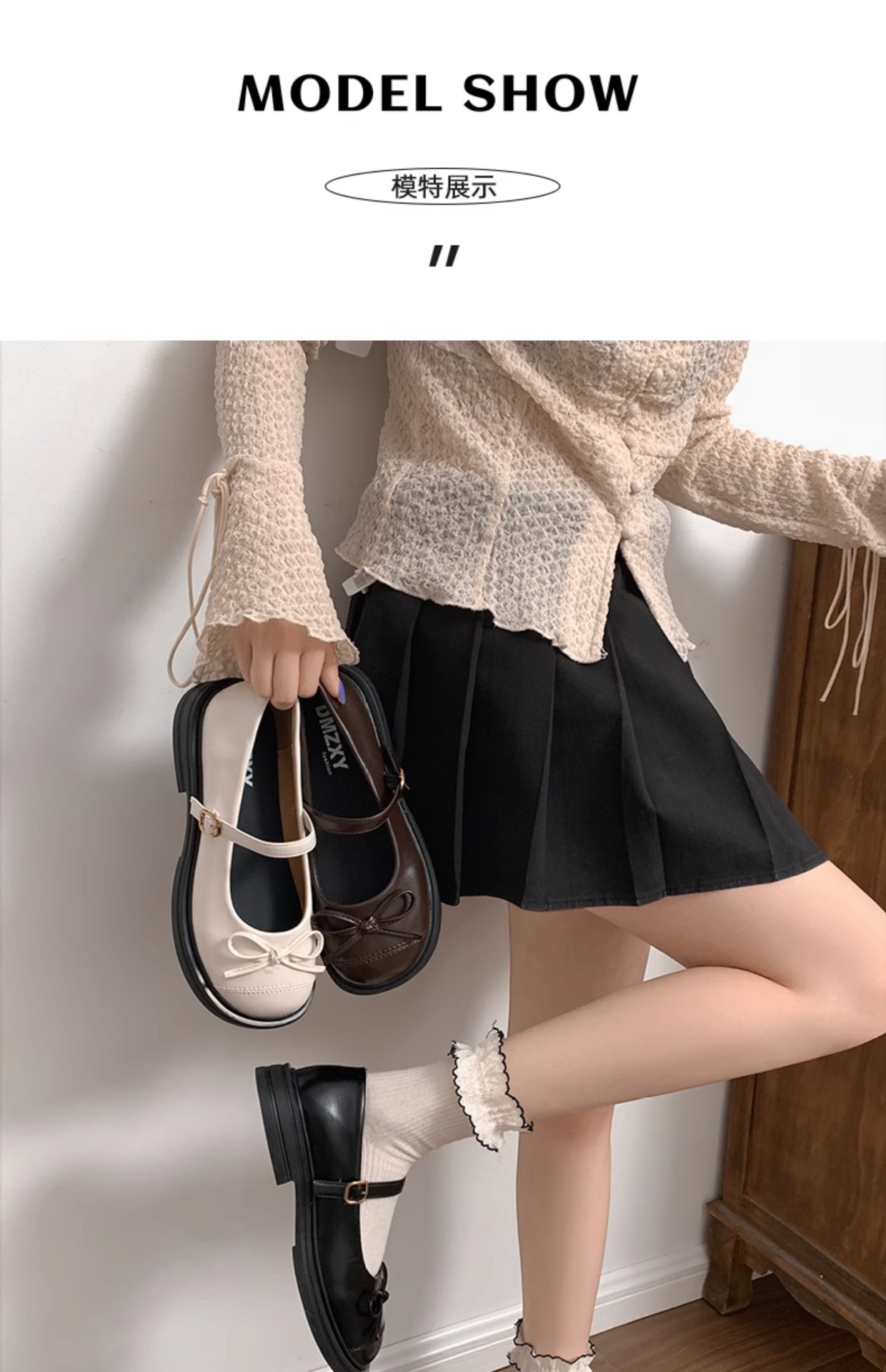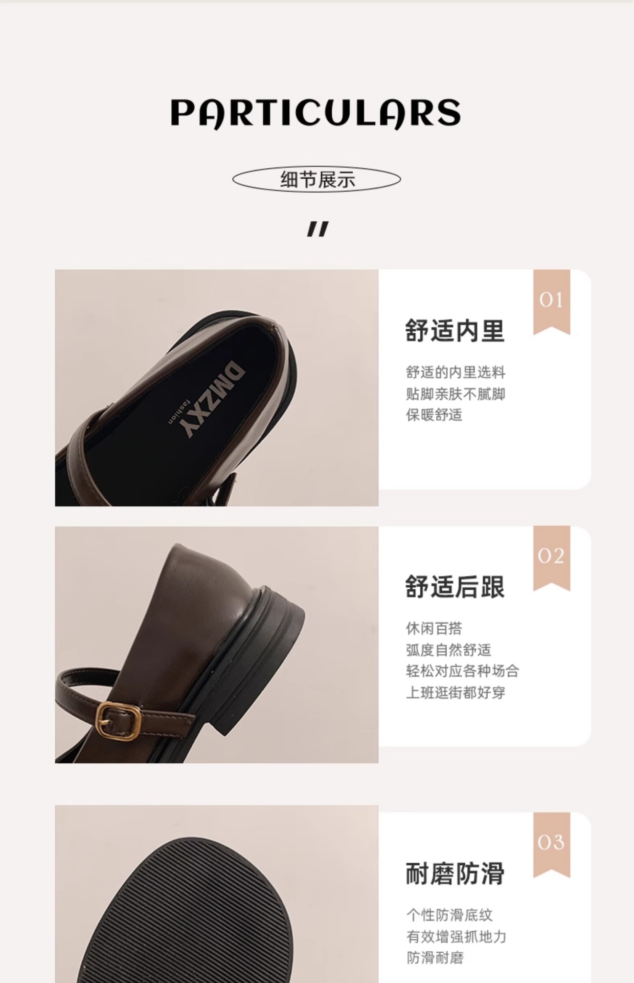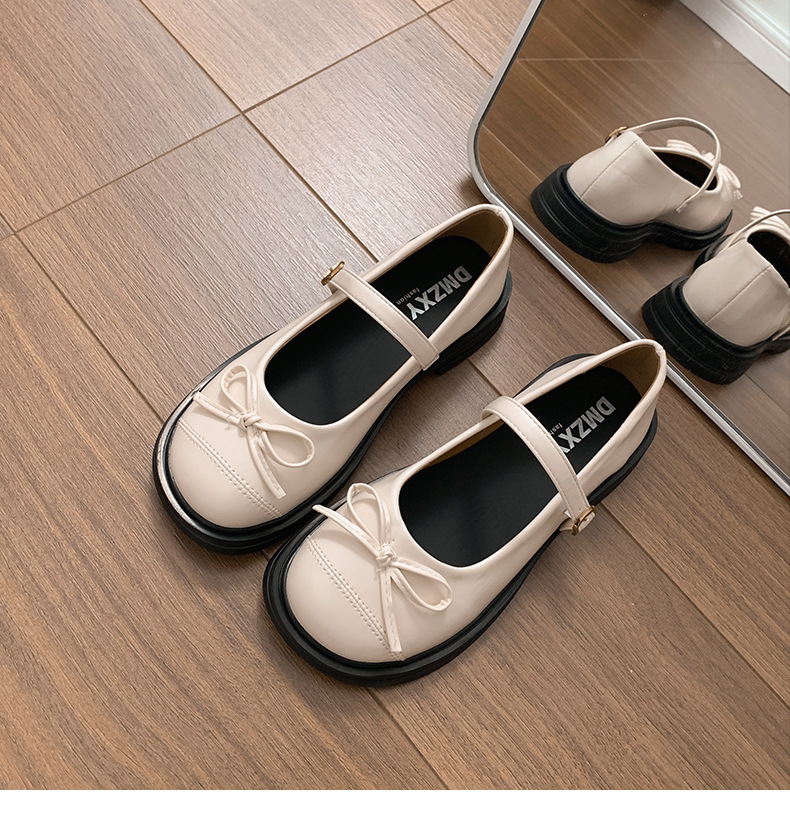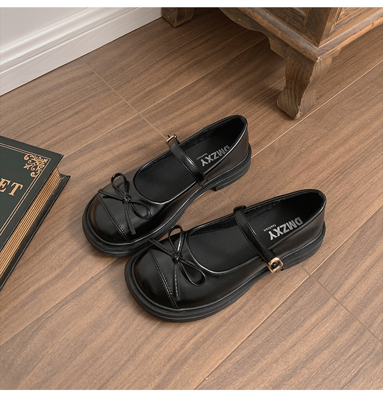 2025년 여름 여성을 위한 인기 있는 검은색 영국식 둥근 발가락 두꺼운 밑창 작은 가죽 신발, 스커트와 함께 신고 키를 높이는 메리 제인 신발스토어 가기