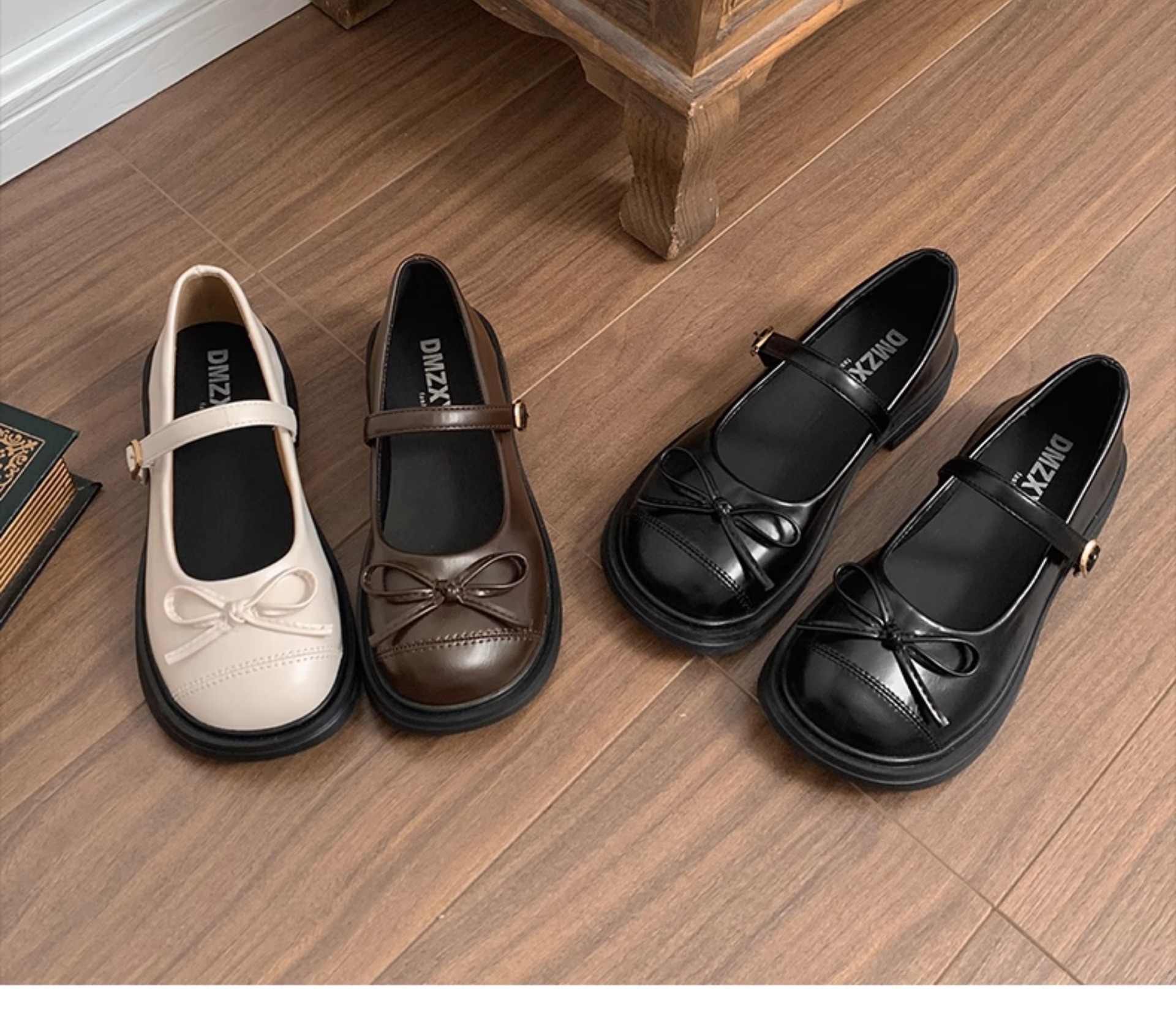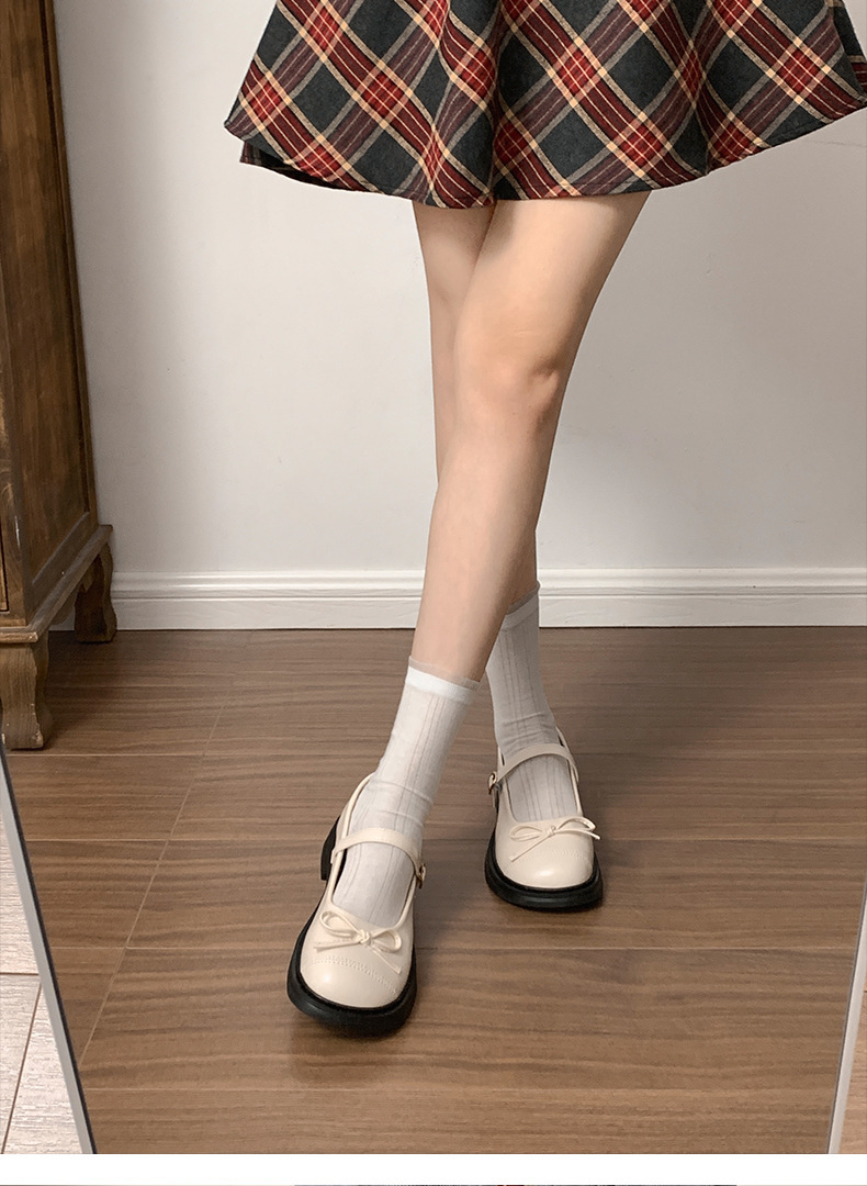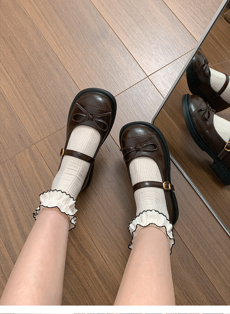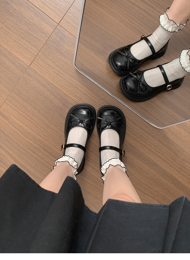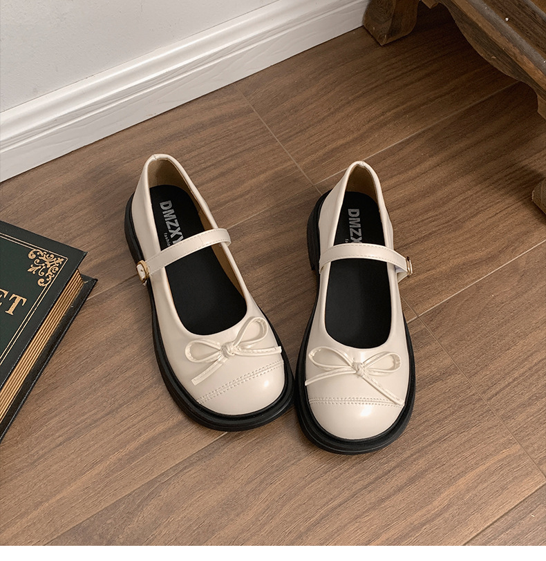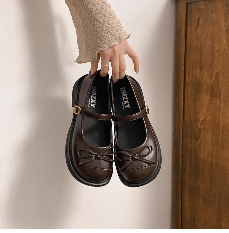2025년 여름 여성을 위한 인기 있는 검은색 영국식 둥근 발가락 두꺼운 밑창 작은 가죽 신발, 스커트와 함께 신고 키를 높이는 메리 제인 신발스토어 가기