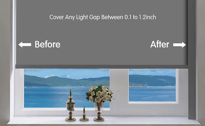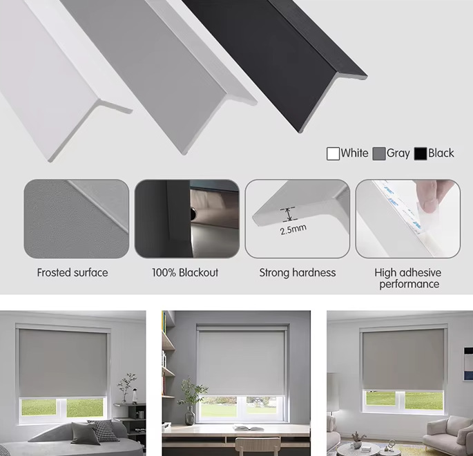 L자형 차광 슬롯 롤스크린, 얼룩말 커튼, 커튼 레일 측면 차광판, PVC 소재, 공장 직판 도매 맞춤 제작