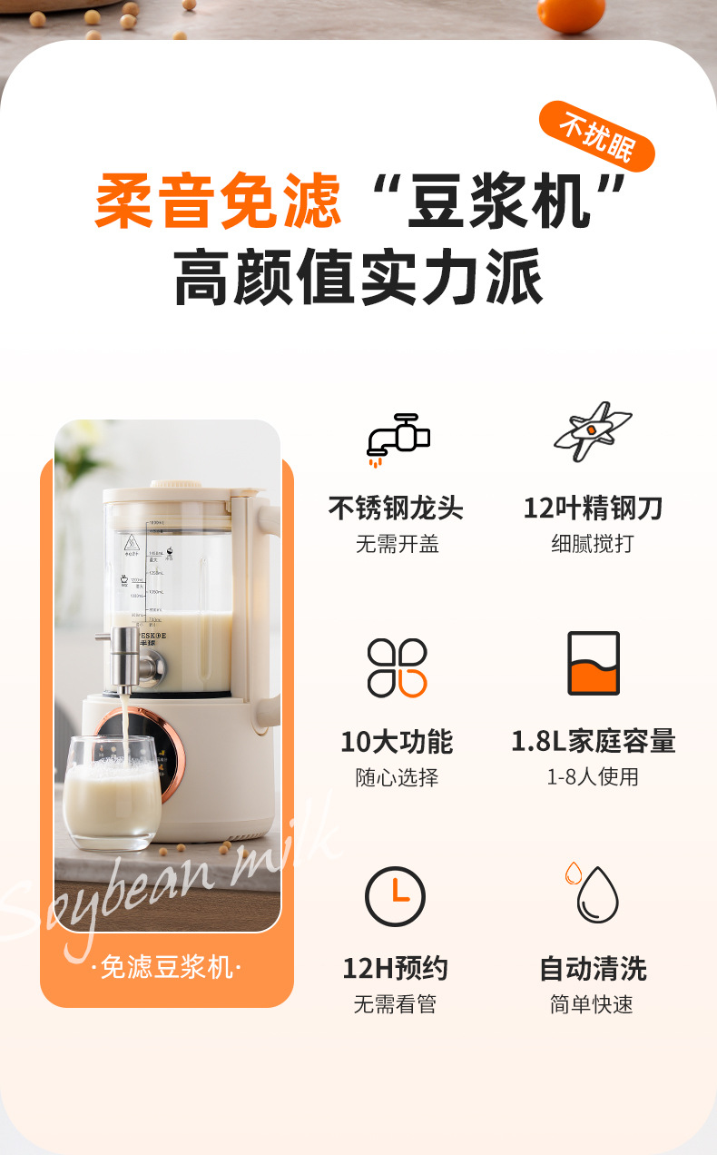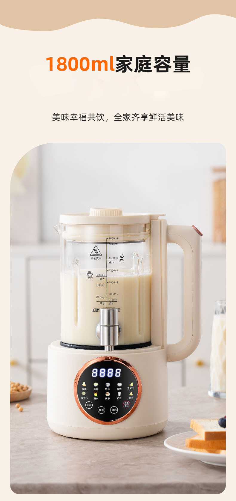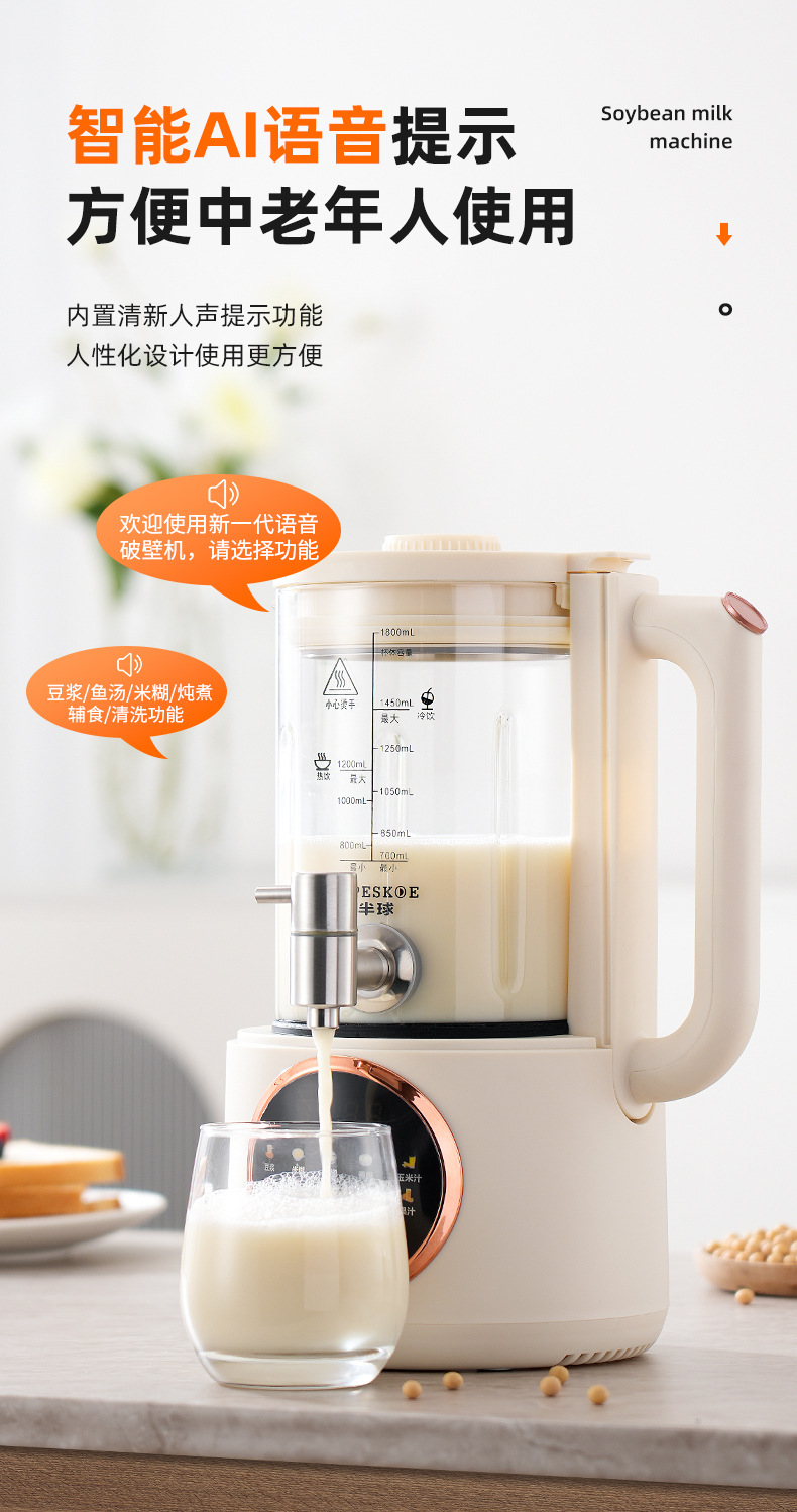 반구형 가정용 무조리 완전 자동 벽 파괴기(수도꼭지 포함) 두유 기계 1.8L 음성 방송 강철 커버 포함스토어 가기