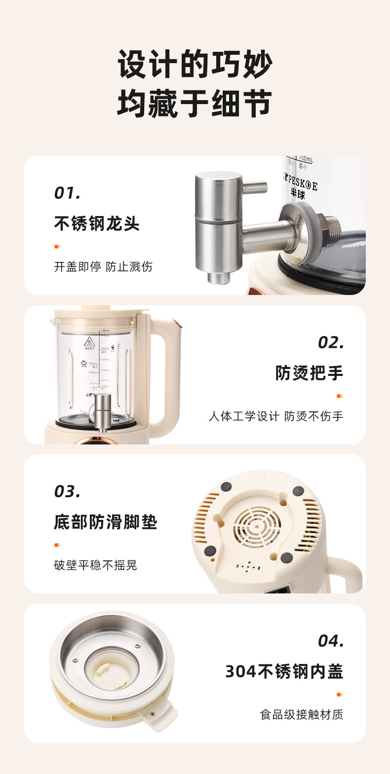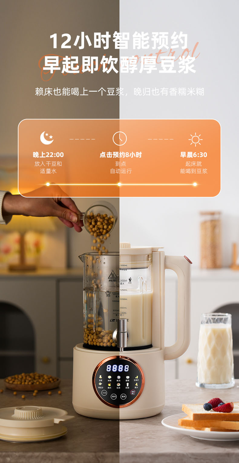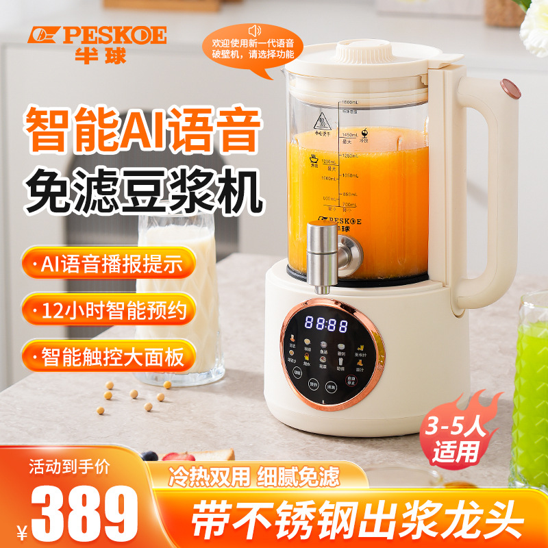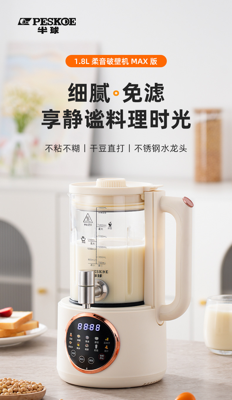 반구형 가정용 무조리 완전 자동 벽 파괴기(수도꼭지 포함) 두유 기계 1.8L 음성 방송 강철 커버 포함스토어 가기