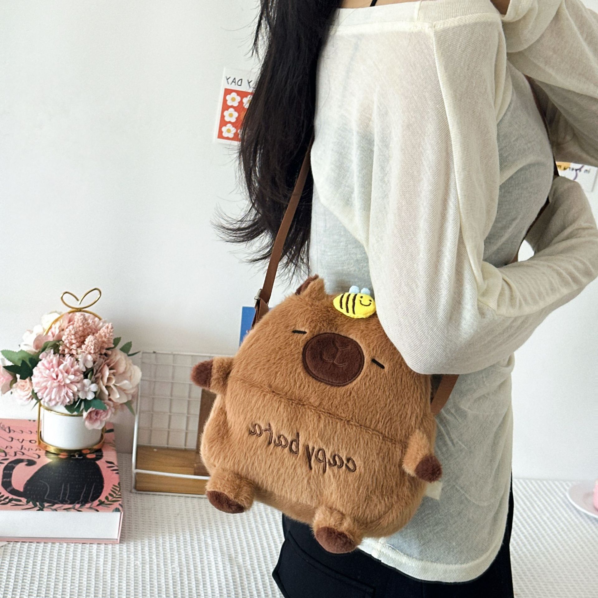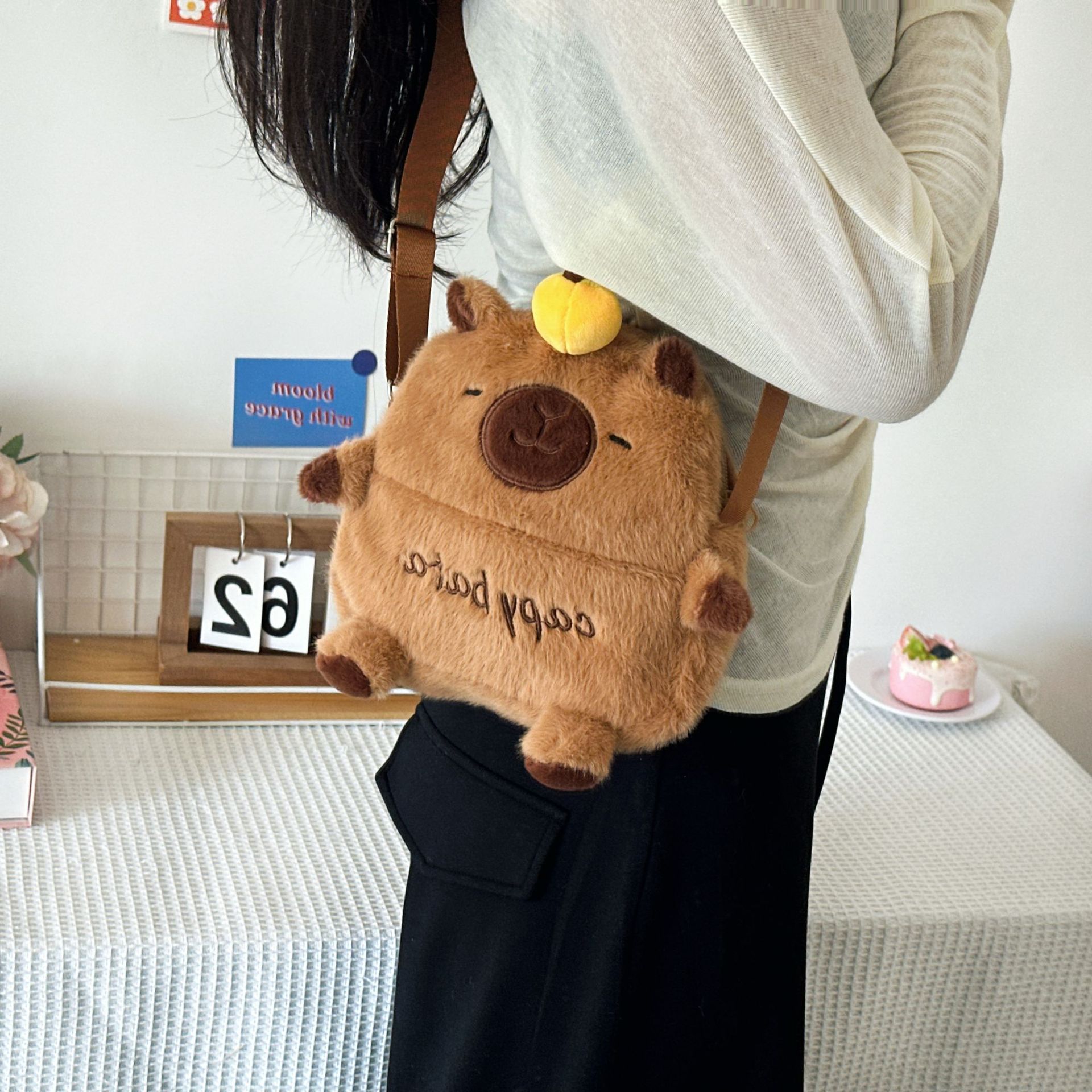 귀엽고 귀여운 카피라라 인형 작은 사각형 가방 소녀 하트 학생 통근 수납 가방 카피 바라 싱글 숄더 크로스 바디 백스토어 가기