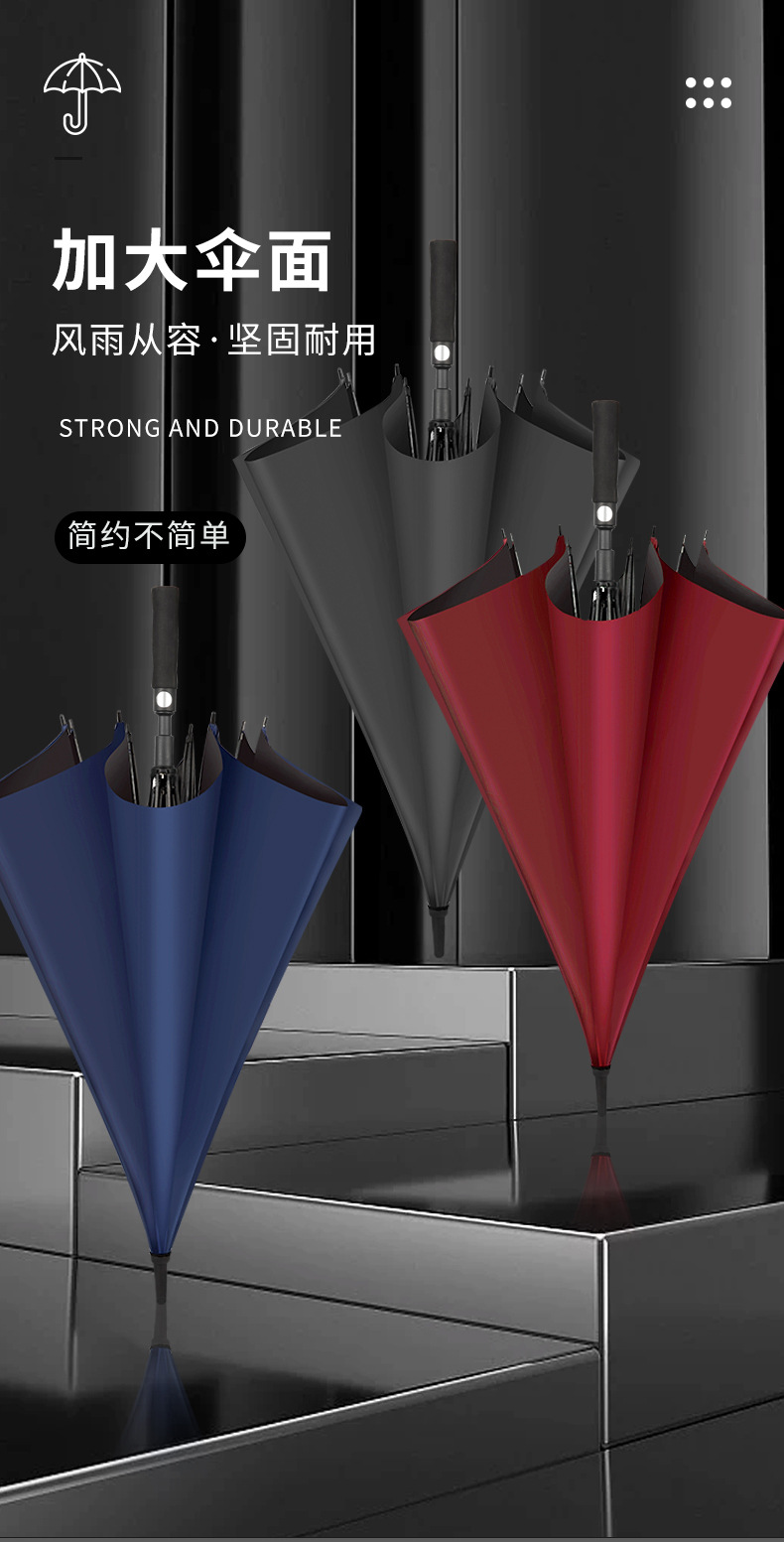 비즈니스 골프 우산 스트레이트 남성용 긴 손잡이 맞춤형 우산 로고가 인쇄된 더블 방풍 선물 광고 우산스토어 가기