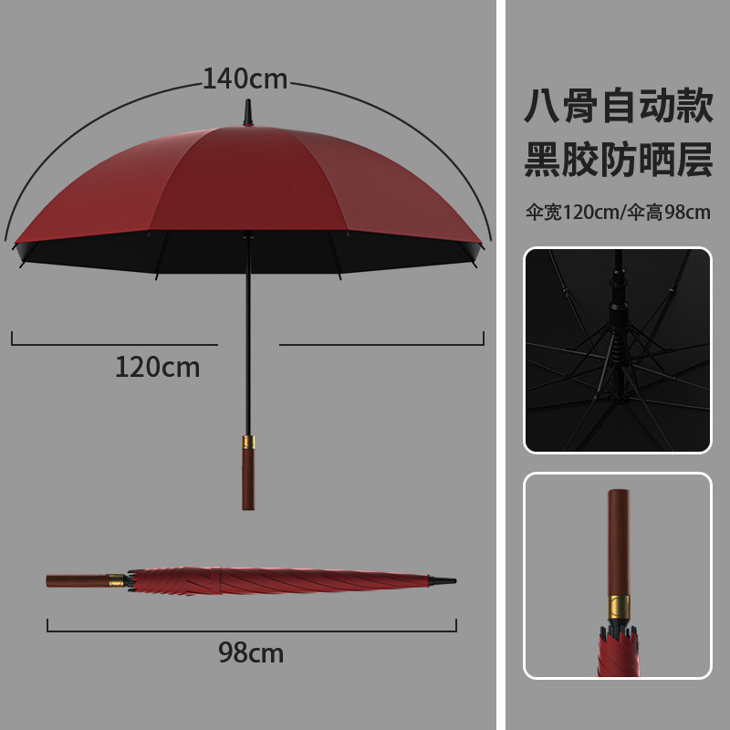 • 27inch 나무 손잡이 장손 우산 '버건디'